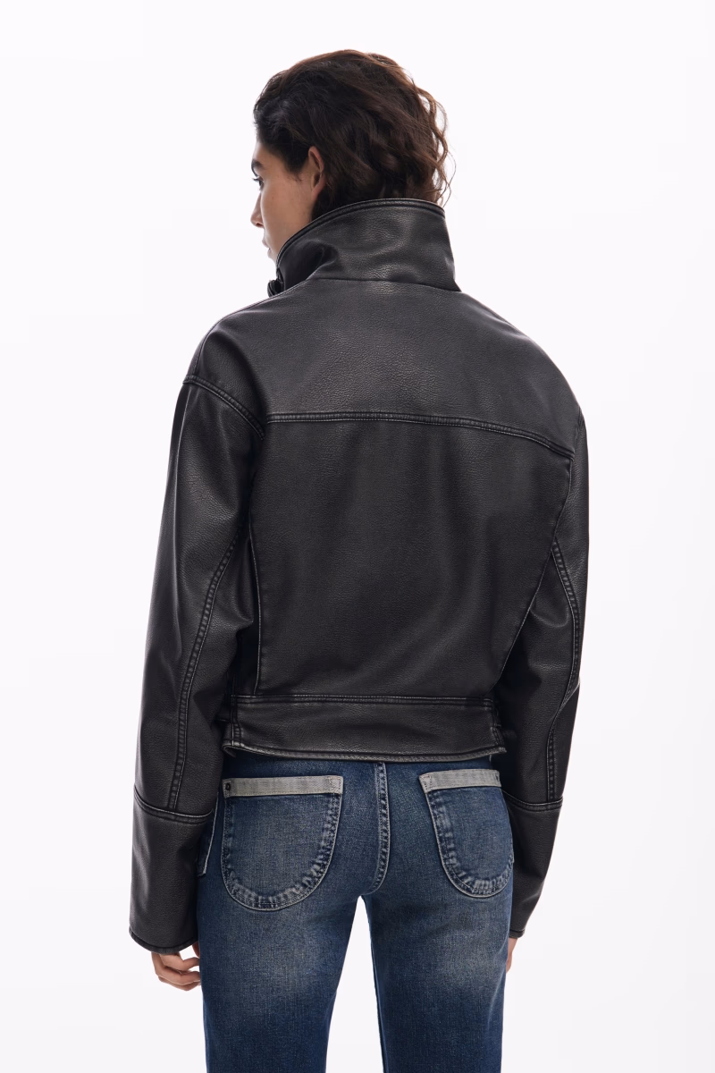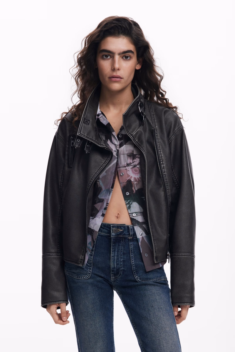 Nadměrná bunda ve stylu Biker se zapínáním na zip a mírně zvýšeným límcem.