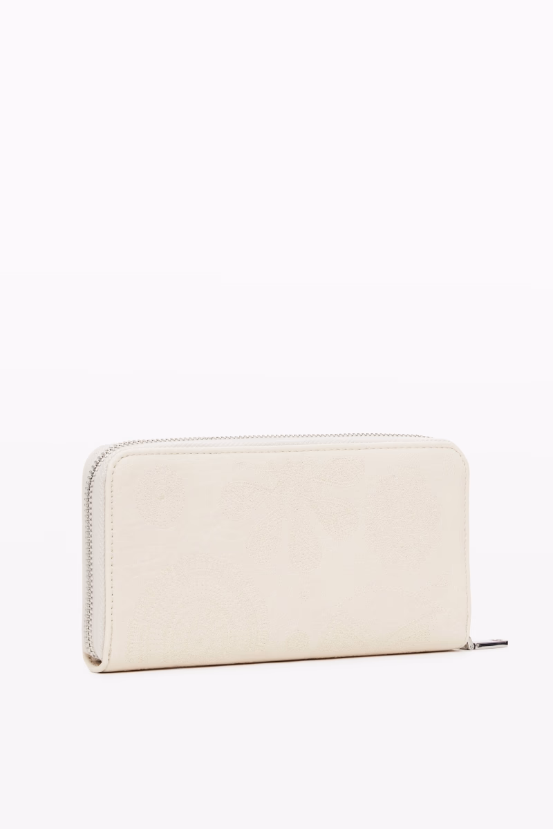 Wallet with leather effect with embroidered flowers and zip fastening