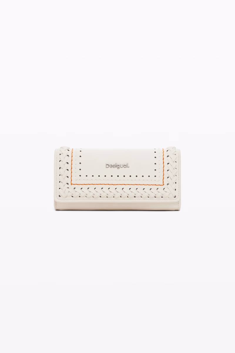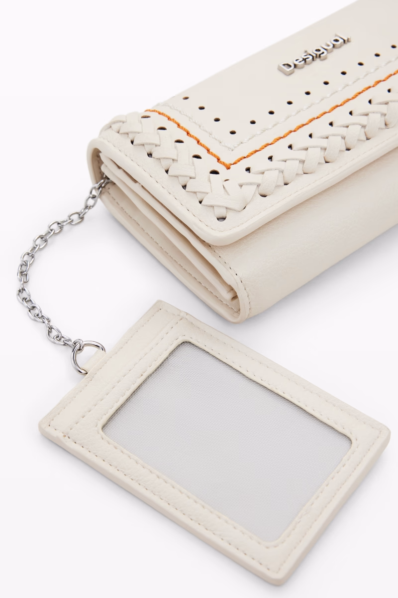 Peněženka z tkaniny s efektem pletené kůže se zipovým uzávěrem a prošíváním