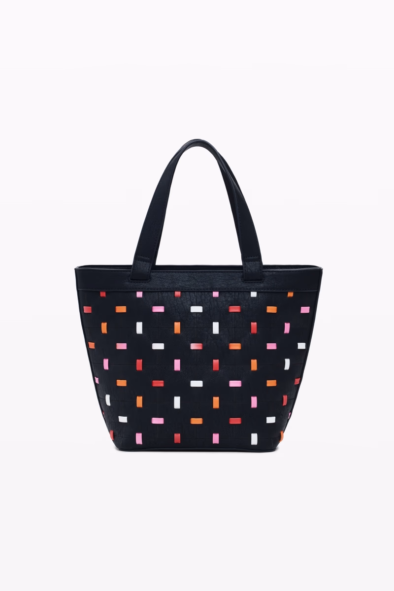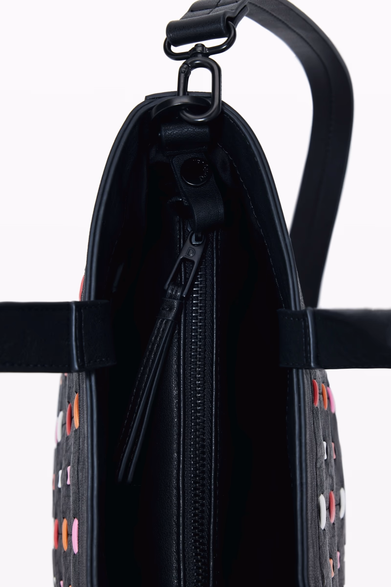 Large perforated shopper bag with contrasting color details and zip fastening.