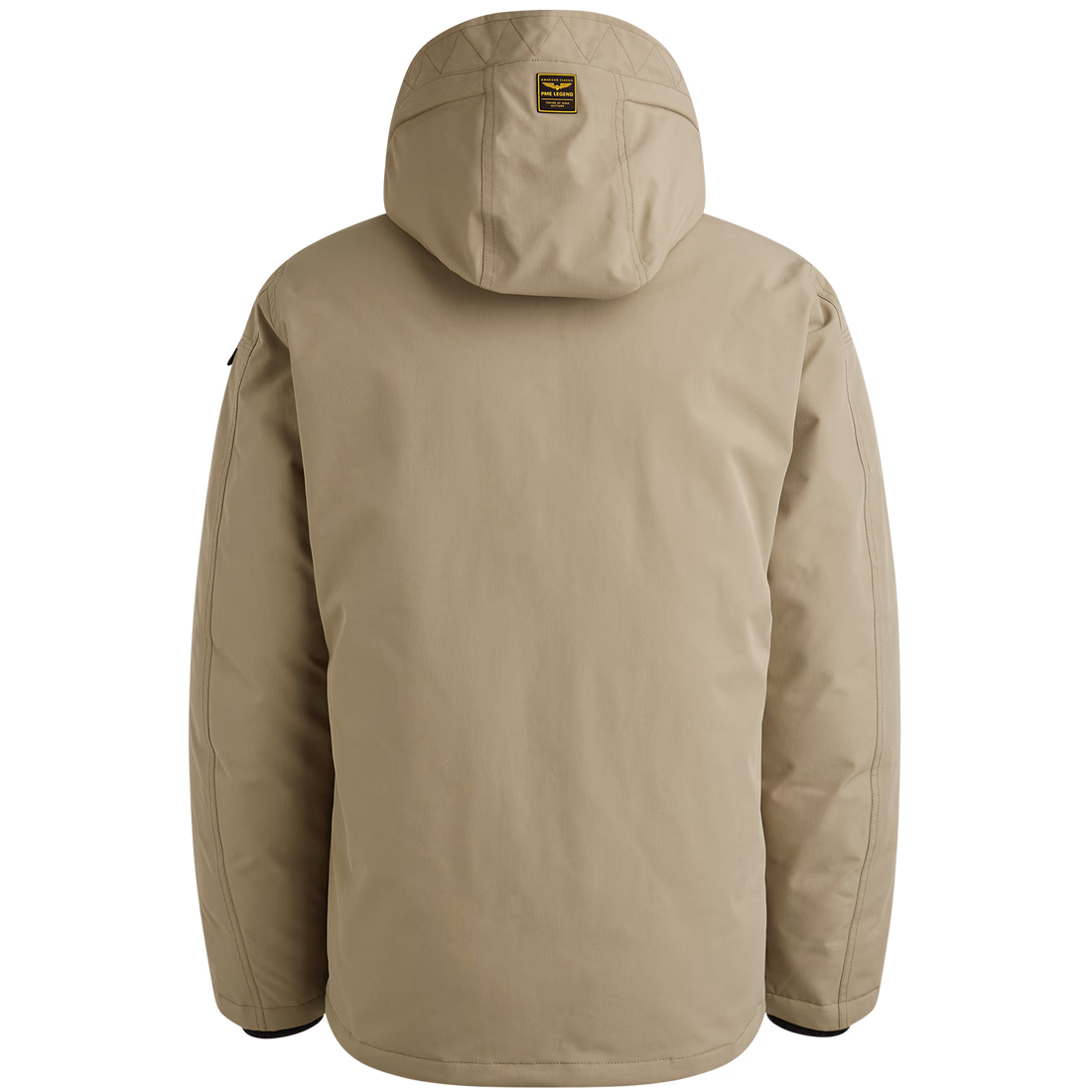 The PME Legend Stearpacker jacket is inspired by an authentic field jacket from 1965. With Tech Down insulation and a removable, adjustable hood, this waterproof jacket is ideal for a variety of weather conditions. Ribbed cuffs and a wind flap with chin guard provide extra warmth and comfort. The jacket has two zippered side pockets with fleece lining, one zippered chest pocket, and two zippered inside pockets. Characteristic PME Legend details, such as the removable sleeve tape, give the jacket its final look.