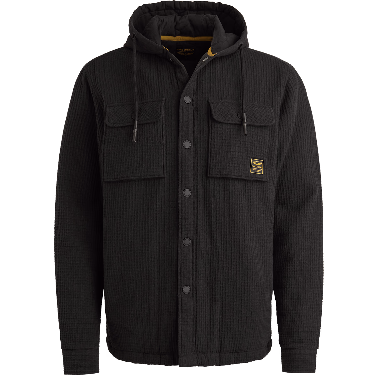 Looking for a perfect piece of layering clothes? This shirt jacket PME legend with hood will be a great accessory to your wardrobe. Thanks to its texture it stands out. The lining has a quilted pattern. Fastening to buttons and two breast pockets complete it with characteristic details of PME legends.
