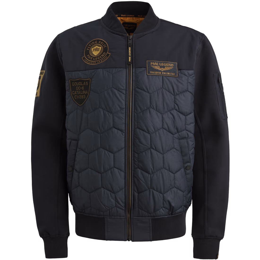 - Vnější kapsy: 1 kapsa na rukávu se zipem, 2 kapsy s drukem