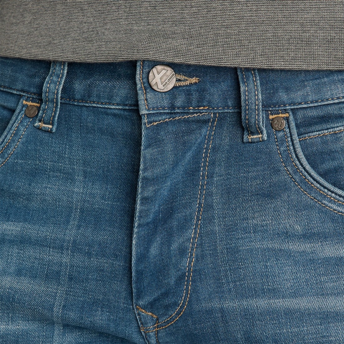 XV jeans are a tribute to the two most memorable PME Legend jeans: The Aviator and PME Legend Nightflight. Denim XV is made of a pleasant cotton / elastane mixture with a comfortable stretch and has a special wash with a touch of green. The XV logo is located on the coin pocket in the form of embroidery, on the button and on the jacron tag on the back of the waist. The line on the front pockets was inspired by the wing of a cargo plane.