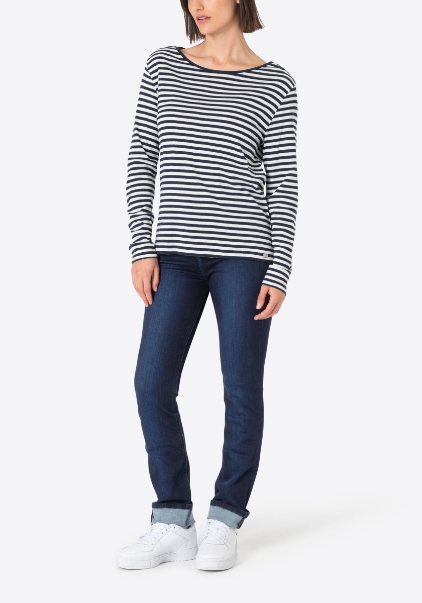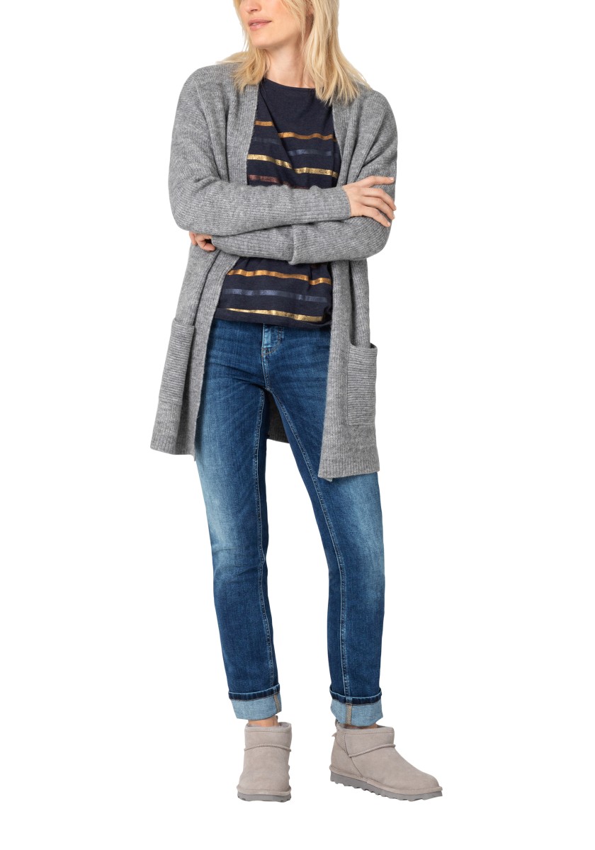 Perfect basic jeans: This high waist slim model is equipped with a mixture of polyester and elastane in a fabric that expands pants and achieves perfect falling. A model with a straight leg in an extra length, which can be rolled in different ways and give it an individual touch. Sophisticated rear pockets are optimally placed and ensure flattering silhouette. We like the denim version in the dark slimming washing with tone seams.