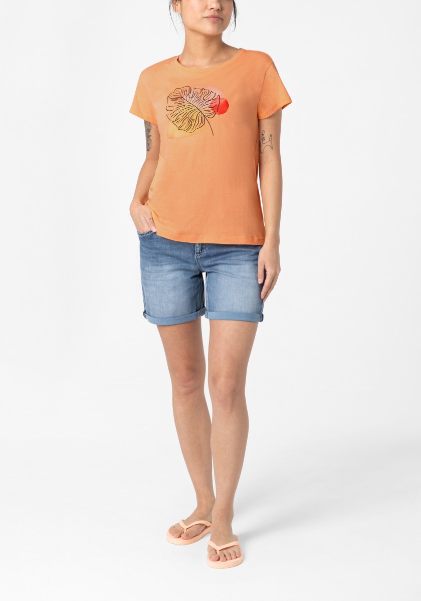 Naprosto nenahraditelný trend a opravdová nezbytnost šatníku: tričko s potiskem. Vyrobeno ze super měkkého, velmi lehkého bavlněného single jersey, má kulatý výstřih, krátké rukávy a rovný lem. Na hrudi: vysoce kontrastní, moderní a nápadný potisk loga s výrazným charakterem. Střih: ženský, rovný. Nejlepší výkonová kombinace? Kombinujte s džínami. Chcete-li cool stylový break look, zkombinujte ho pod šaty na tílko.