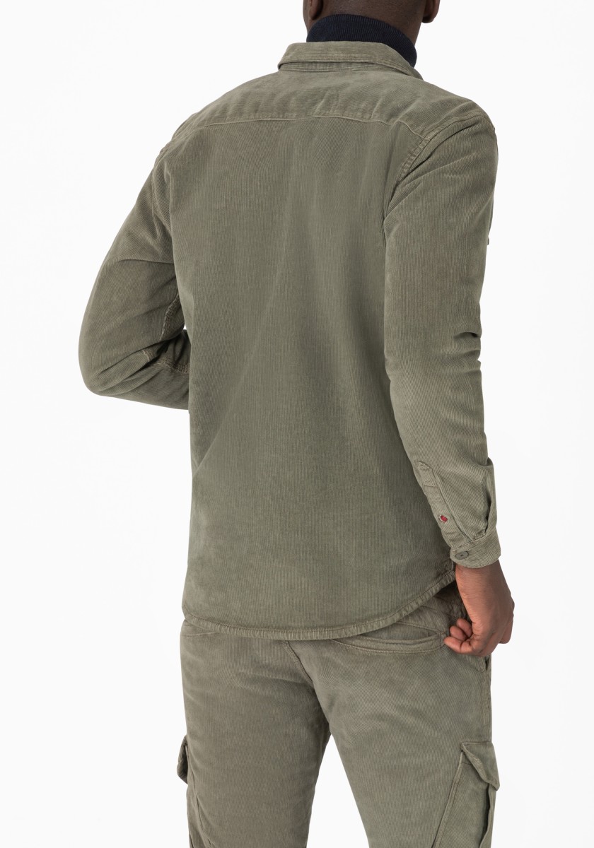 Can be worn in summer or winter, closed or open and goes with all jeans, chinos, sneakers and boots in your existing wardrobe: the overshirt made of robust, dyed stretch cotton corduroy. With Kent collar, patch chest flap pockets, snap fastener, classic shirt sleeve design, back yoke, two practical side pockets and a rounded hemline. High-quality: The striking lining with a masculine checked pattern.