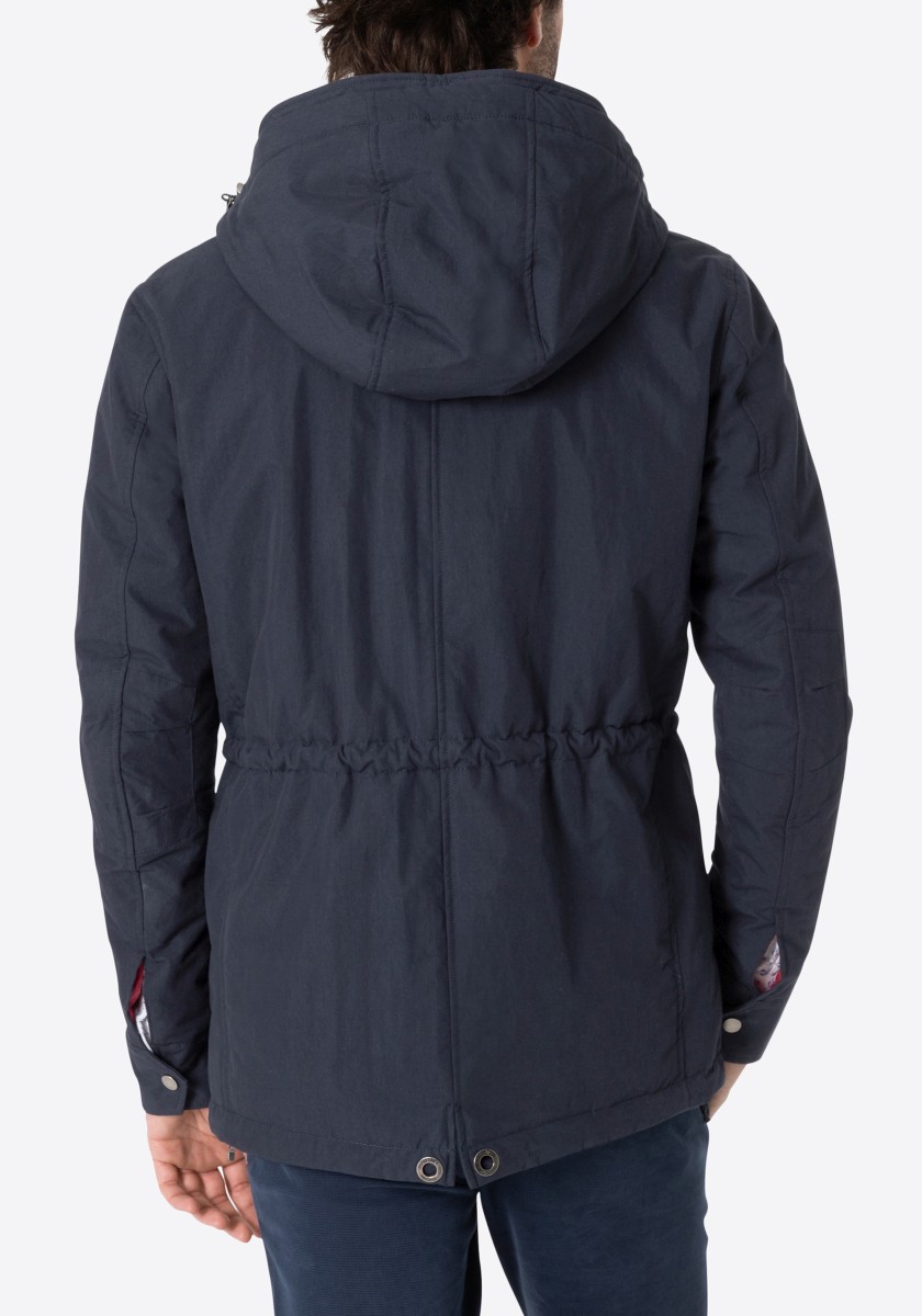 Dokonalá ochrana před chladem a špatným počasím: parka vyrobená z vysoce kvalitní, voděodpudivé bavlněno-nylonové funkční tkaniny. Parka má odnímatelnou nastavitelnou kapuci s krátkým kšiltem, pět praktických vnějších a dvě další vnitřní kapsy a také tvarovaný střih rukávů se záplatami a manžetami. Podšitá a vatovaná bunda se zapíná na skrytý a podložený zip s légou na druky. Stahovací šňůrka v pase reguluje šířku.