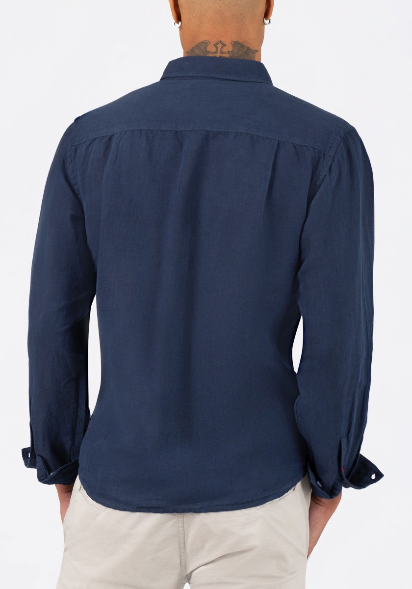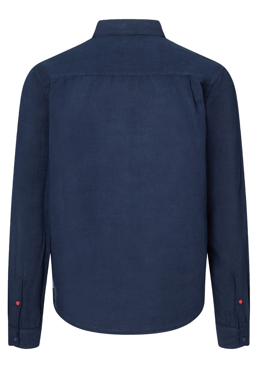 Fashion trend: linen shirts. Clean design, casual and made of a noble blend of high-quality materials: the long-sleeved shirt in cotton and linen. Relaxed regular fit with narrow concealed button collar, quilted button placket and rounded hemline. Special features: many details, such as pitorette triple stitching on the side seams, small buttons in a contrasting colour and seam reinforcement on the side hem. Style tip: combine over a plain white T-shirt with a round neck.