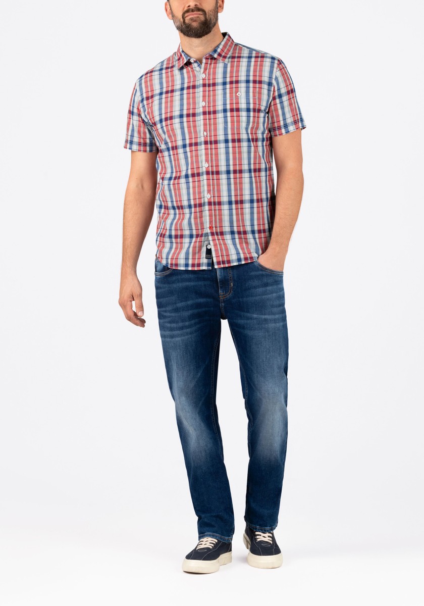 Again, there is only one tip for styling plaid shirts. Please do not combine them too well or classically. Mix them with modern trendy pieces. Short-sleeved shirts with a kent collar and a patch pocket. The smooth, yarn-dyed quality and regular fit cut promise a comfortable wear. With special details: the inside of the collar band and shoulder yoke are in placket, the side seams have durable triple stitching.