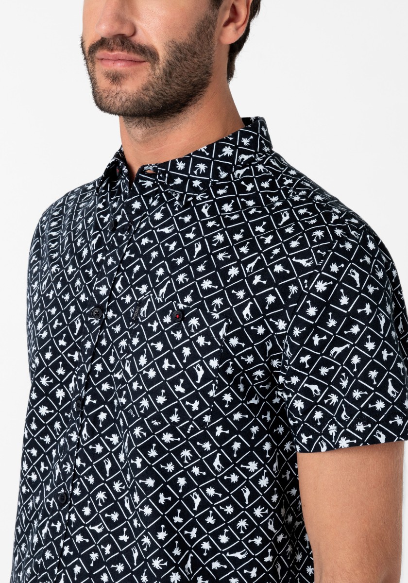 The noble flax shirts of natural fibers are incredibly practical on hot days. Len will not only cool you, but are also breathable. Casual summer basic shirts with short sleeves in classic regular cut has a Kent collar, sewn button leég, sewn pocket for buttons and a round lower hem. Striking: nationwide print and many details such as robust triple stitching on the side seams, fine contrasting details and reinforced seams on the hem.