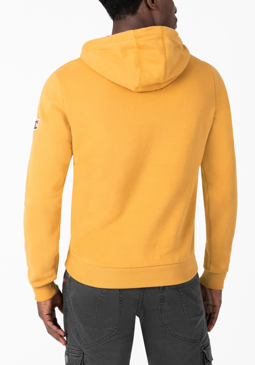 It's one of the most beautiful and simple looks, but still distinctive: the logo sweatshirt. If you're brave enough, size up to make the outfit even more authentic. The model is made of high-quality, double-sided pure cotton, has a brushed finish and a pleasant brushed interior in a contrasting colour. The drawstring at the edge of the hood has distinctive metal eyelets and a pitted drawstring. On the chest: logo in sophisticated flock 3D printing technology.