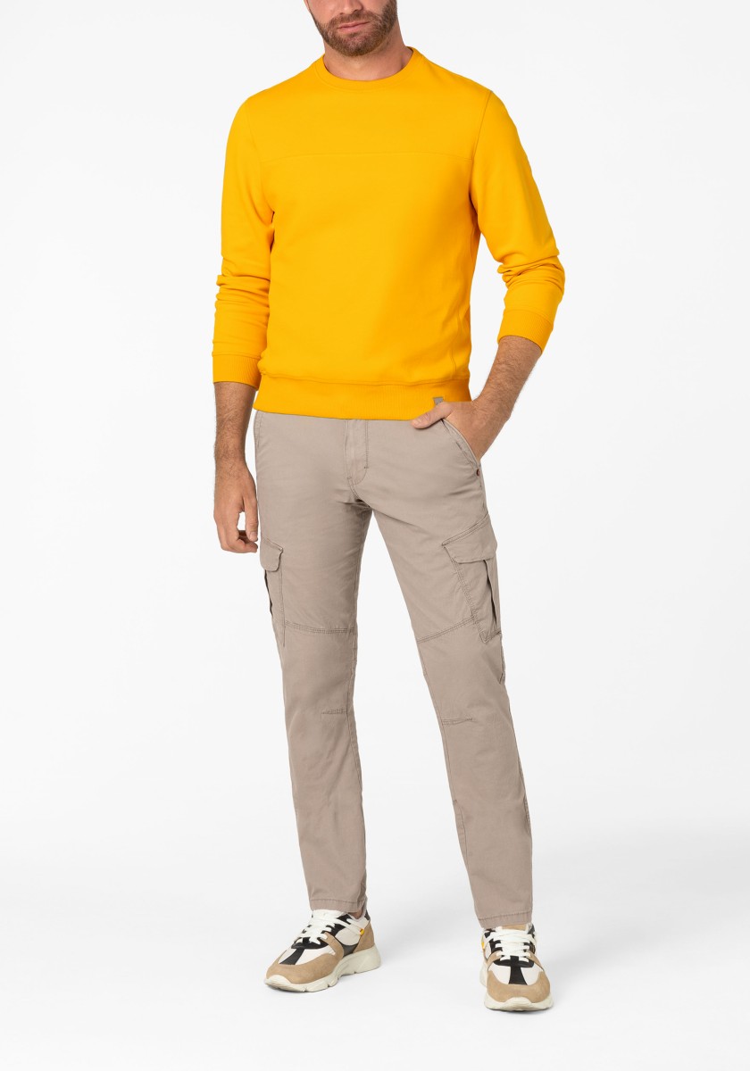 The sweatshirt is a simple foundation that can be combined with almost everything. He feels comfortable in any style and can do everything from sports to elegant to elegant and casual. The model in high -quality two -leaf pike quality made of soft cotton mixture is presented by granular outside and inside in the Otomanian structure. Modern look with ribbed neckline, transverse seams, triangular insert on the side seam, inner sleeves and ribbed cuffs.