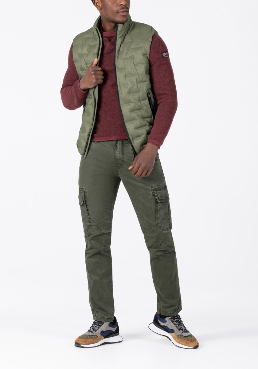 Wearing comfort at the highest level: ultra-lightweight, high-performance vest made of water-repellent crinkle quality nylon and breathable, high heat retention padding from Sorona®. Quilted vest style enhancement: the chambers are glued, not quilted, offering a completely new, modern look. Model with stand-up collar, waterproof functional zippers and chin guard. Elasticated: armholes and hem. Inside: contrasting melange lining and zipped pocket.