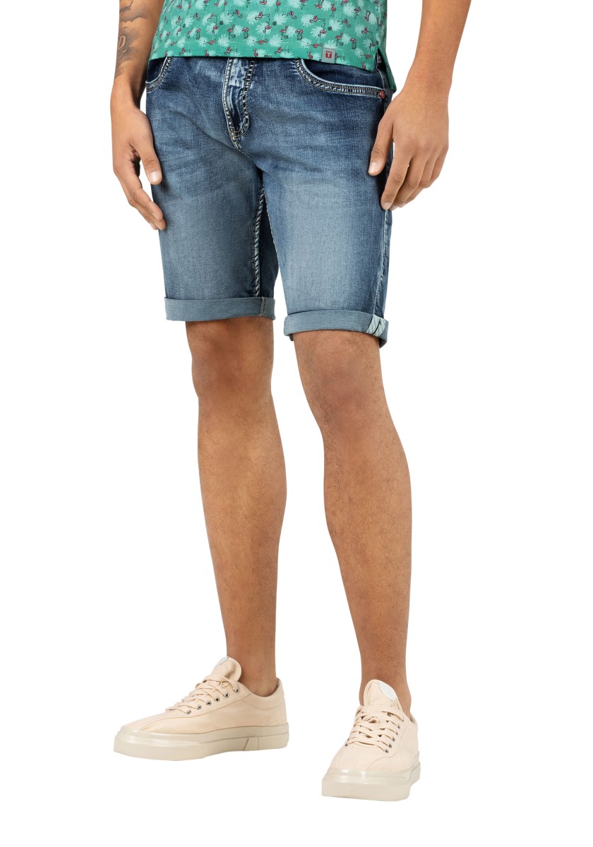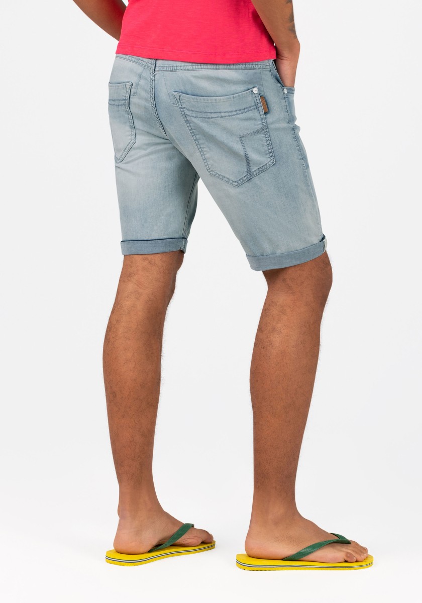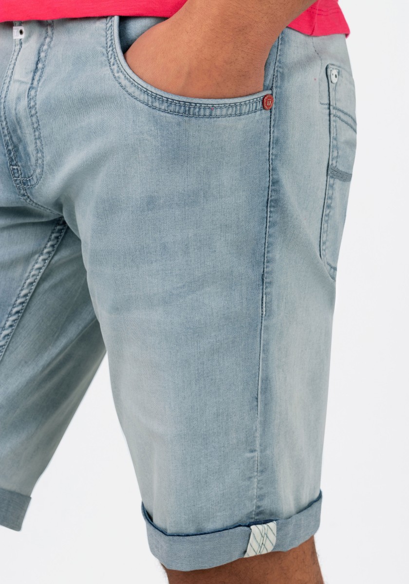 They keep up with every move and are a fashion classic: ultra-comfortable, stretchy shorts in lightweight denim-quality cotton. In an optimally relaxed slim cut with a medium high waist and short narrow legs. The model is in a very light, elegant aqua blue wash with picturesque seam details. In a modern style with five pockets, they are the ideal summer staple. If you want, you can casually roll up the pants to reveal the cool side seams.