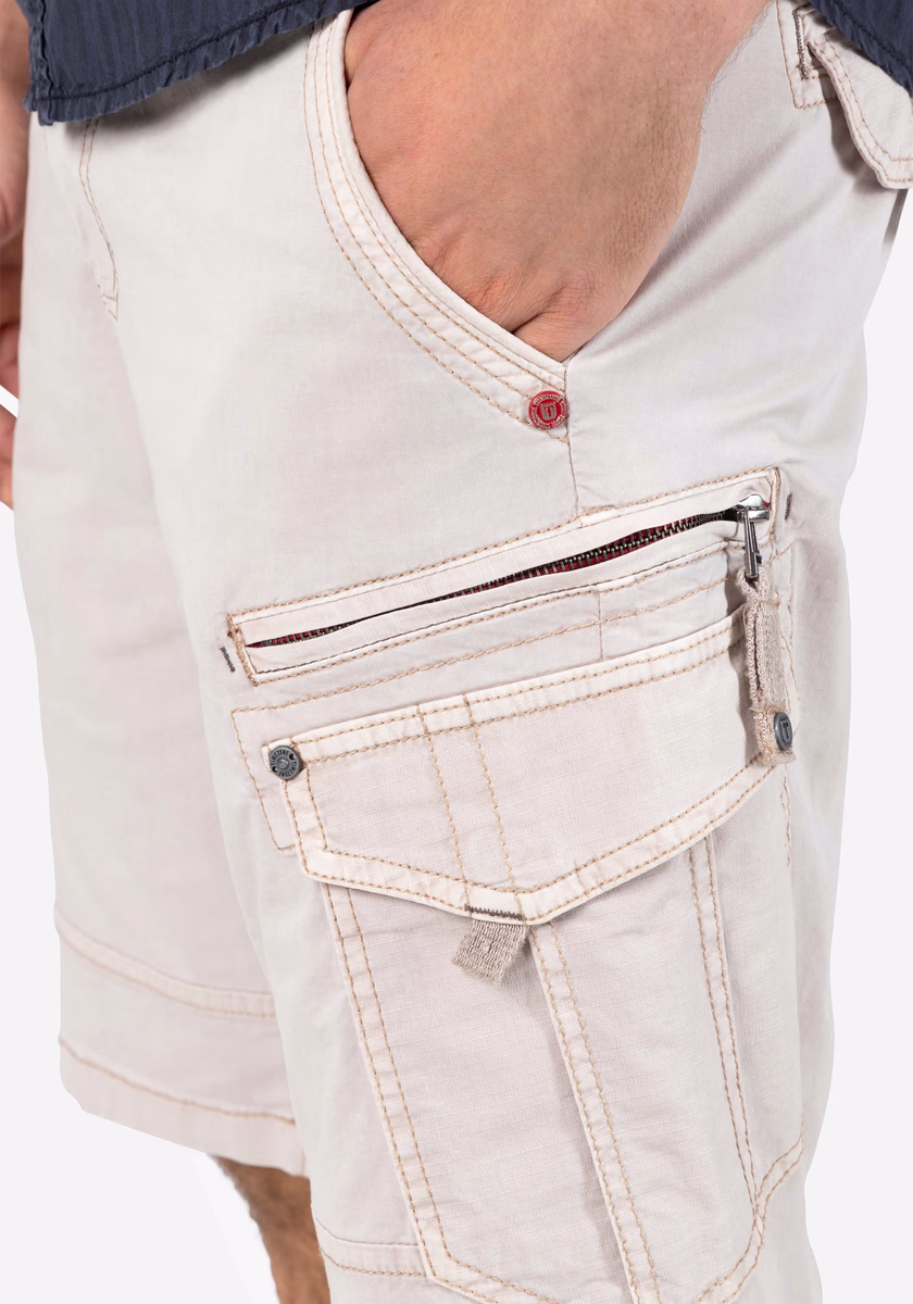 Light hush meets Ripstop! Casual cargo shorts with manly details are made of a robust mixture of flexible cotton materials. Model with classic waist, side pocket for coins, round pockets with lined edge at the front and other one -sided zippered pocket. Side pockets with foot and two rear pockets with foot fastened to the patent. The exclusive process of dyeing and washing of clothing is provided by Vintage Cold.