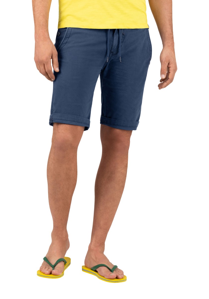 Sportovní nádech a nový, čistý design: ležérní malé šortky v letním, lehkém a elastickém plátně. Mužný úzký střih se středně vysokým pasem a volně ohrnutými nohavicemi. Vlastnosti: Pas se stahovací šňůrkou, kapsy s lemováním, zadní kapsy s lemováním a ozdobnou knoflíkovou dírkou a boční kapsa na mince se zapínáním na druk. Stále nejlepší kombinace: šortky a polokošile nebo tričko.