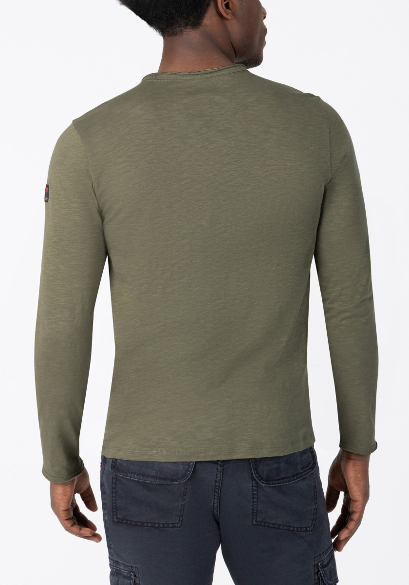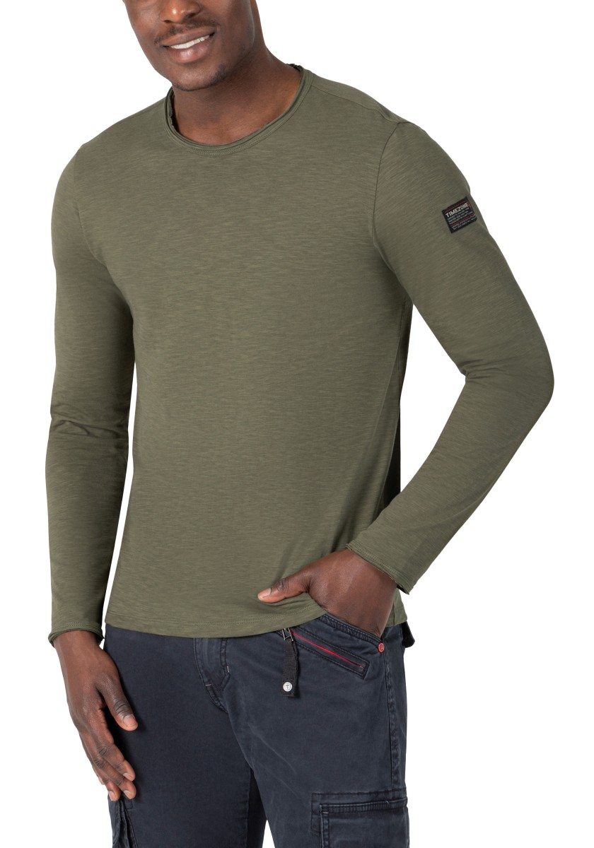 Clean design with long sleeves, a casual fit and ruffled edges at the round neckline, sleeve ends and hem. Quality: soft, lightweight slub jersey in high quality pure cotton. Comfortable: a subtle print at the neck replaces the uncomfortable woven label. The long-sleeved shirt is ideal as a base layer, but is also a great and pleasant alternative to sweatshirts and similarly as a stand-alone piece.