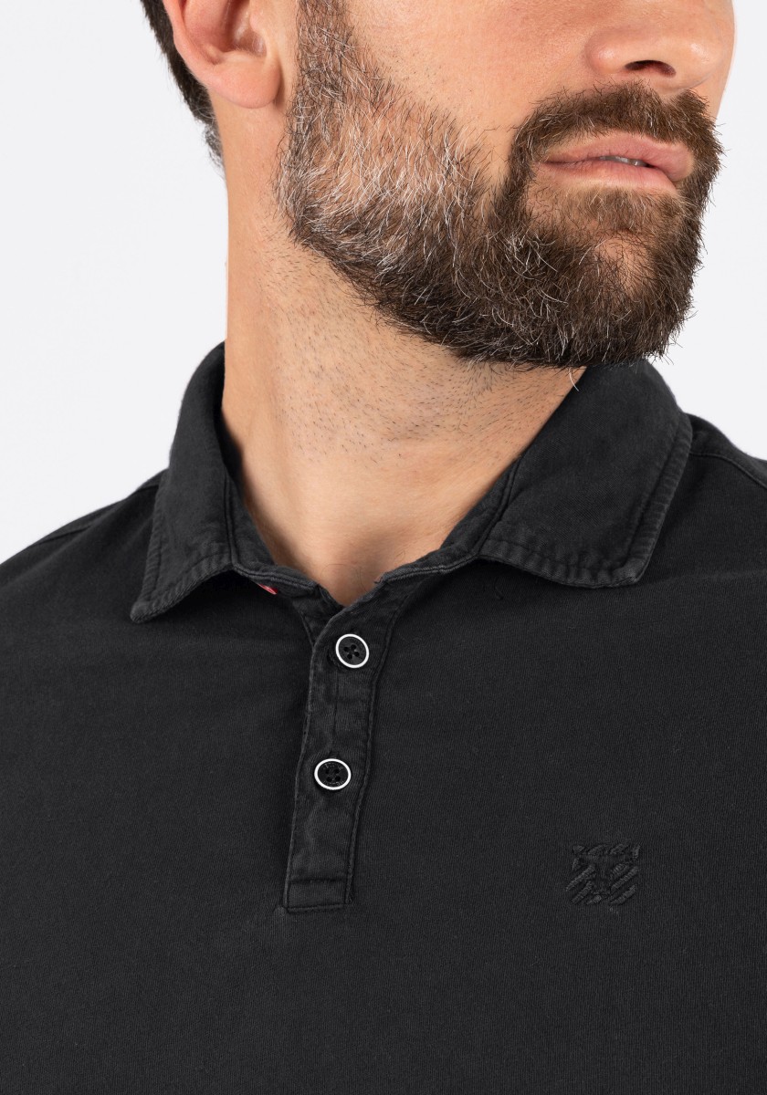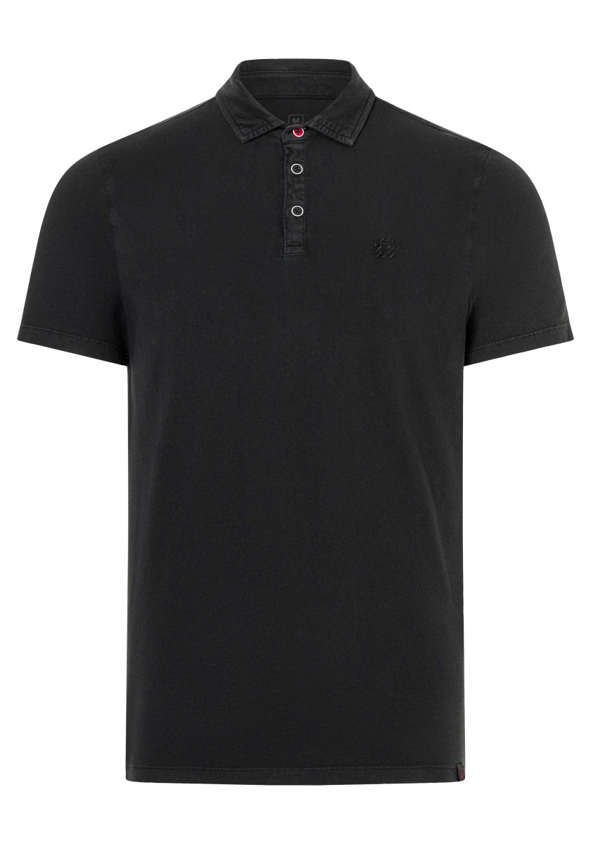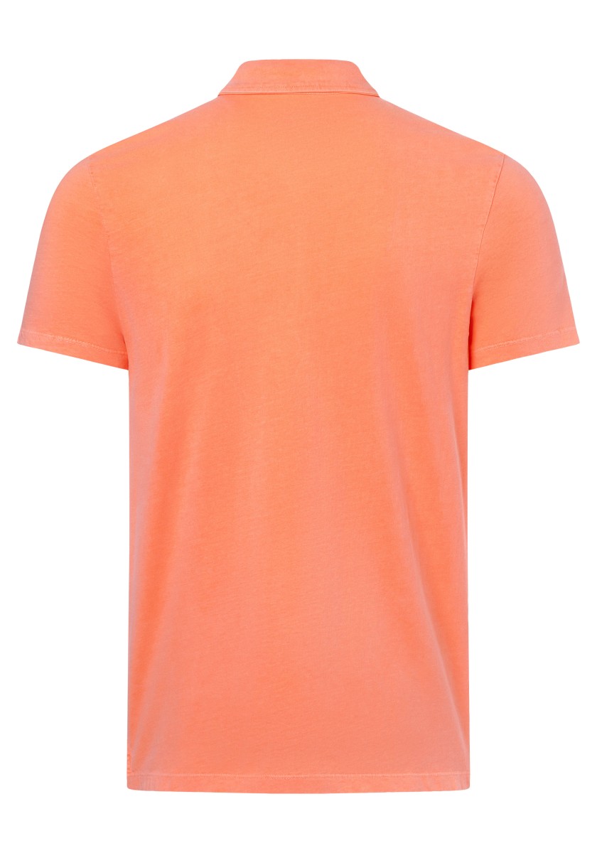 Universal polo shirt. You can combine it in many ways, it always looks fresh and sporty and sometimes it can be elegant. Styling is important. A classic cut with an outer fabric collar, short sleeves and a straight hem with slits at the sides. Model made of pure garment-dyed cotton in timeless, lightweight single jersey quality. With special details: a very narrow button placket with a contrasting button and an elegant, matching logo embroidery on the chest.
