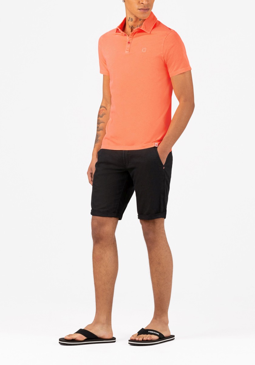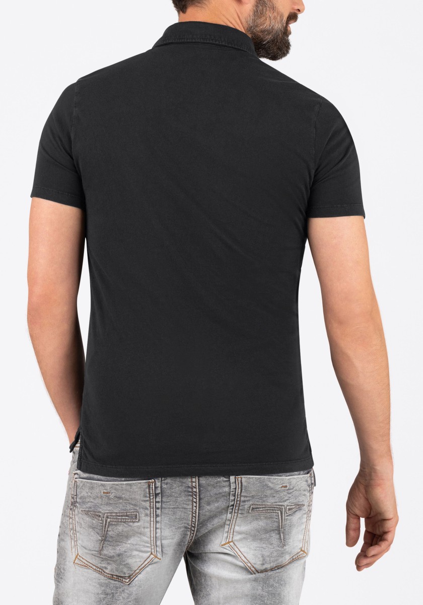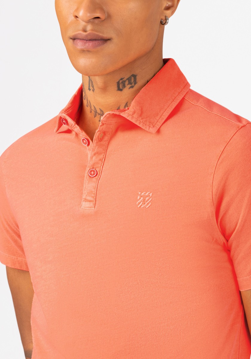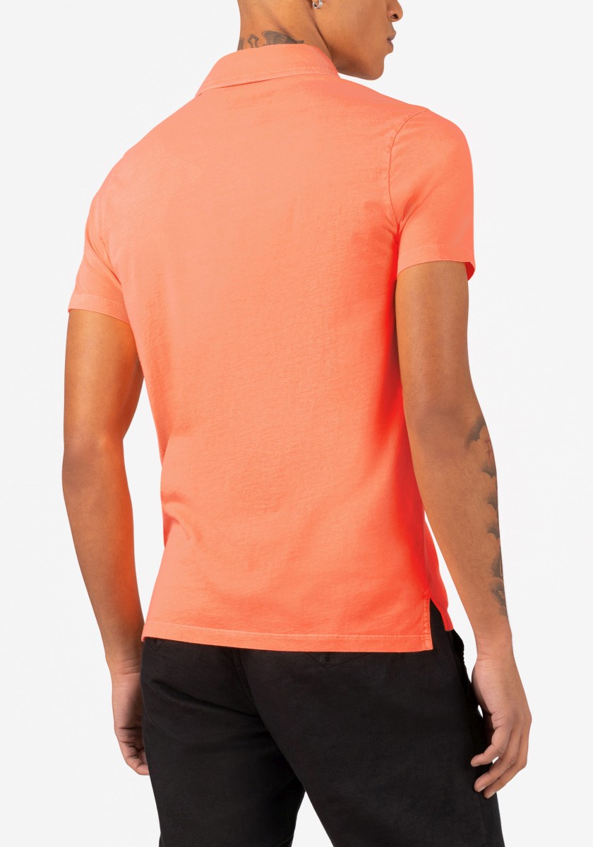 Universal polo shirt. You can combine it in many ways, it always looks fresh and sporty and sometimes it can be elegant. Styling is important. A classic cut with an outer fabric collar, short sleeves and a straight hem with slits at the sides. Model made of pure garment-dyed cotton in timeless, lightweight single jersey quality. With special details: a very narrow button placket with a contrasting button and an elegant, matching logo embroidery on the chest.