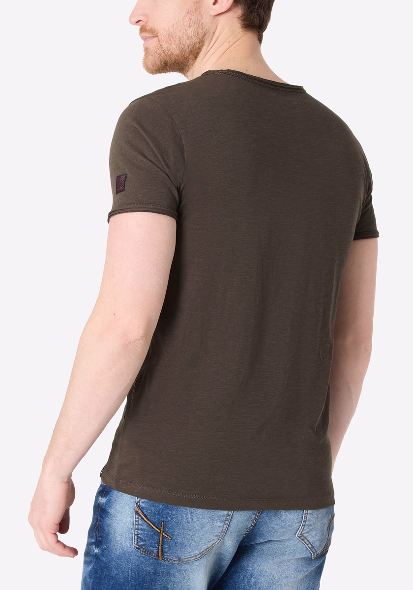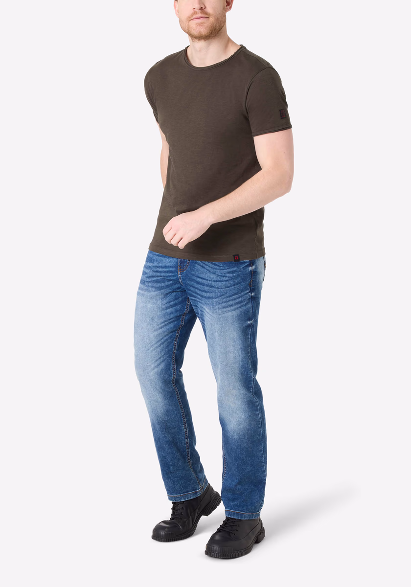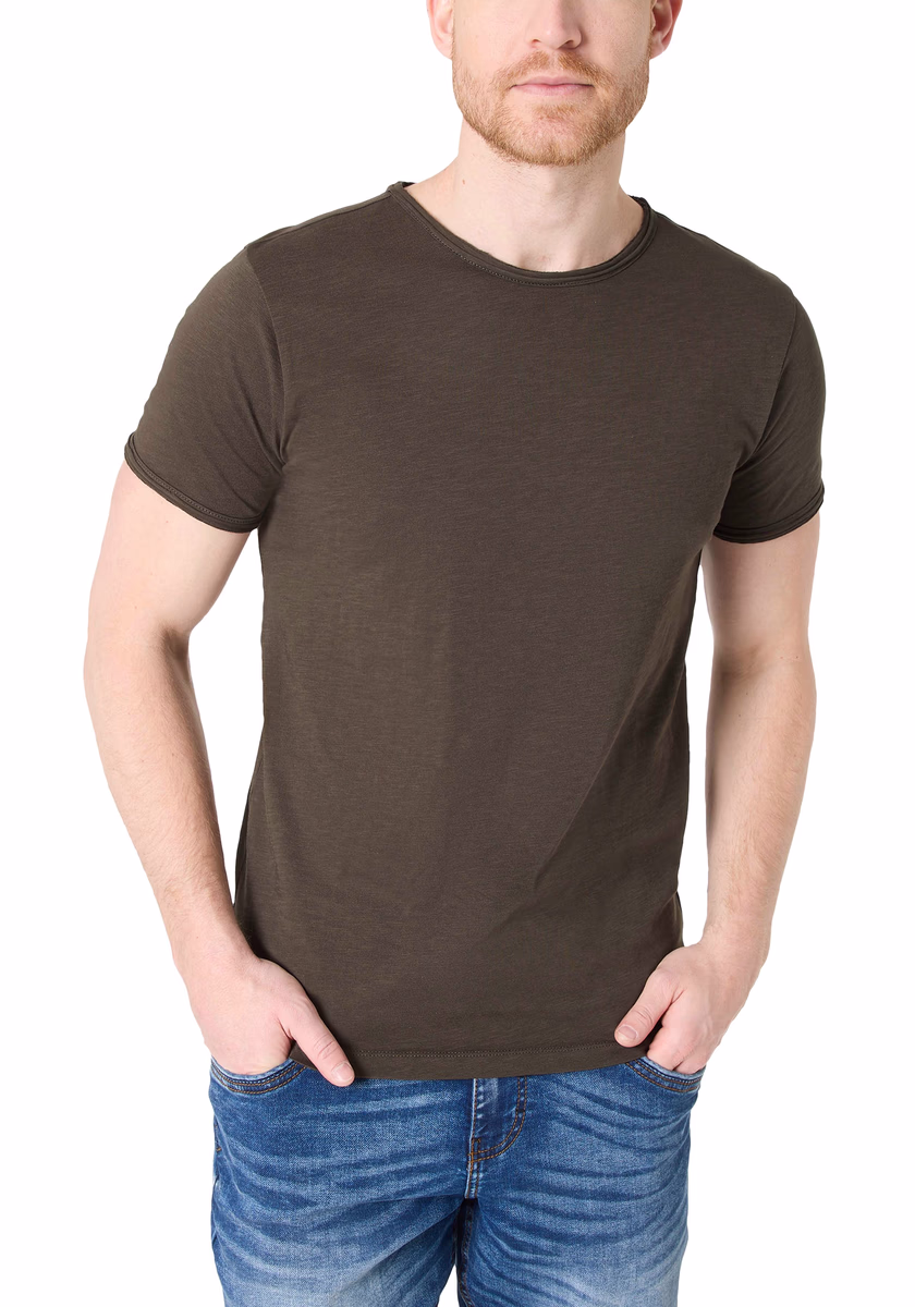 Clean T -shirt design with casual cut and rolled edges on the neck and cuffs. Quality: Soft jersey fabric made of high quality clean cotton. It is characterized by an irregular, living surface, which is the result of deliberate thickening of the yarn. Pleasant: Fine print on the neck is replaced by a annoying woven label. Available in a wide range of colors.