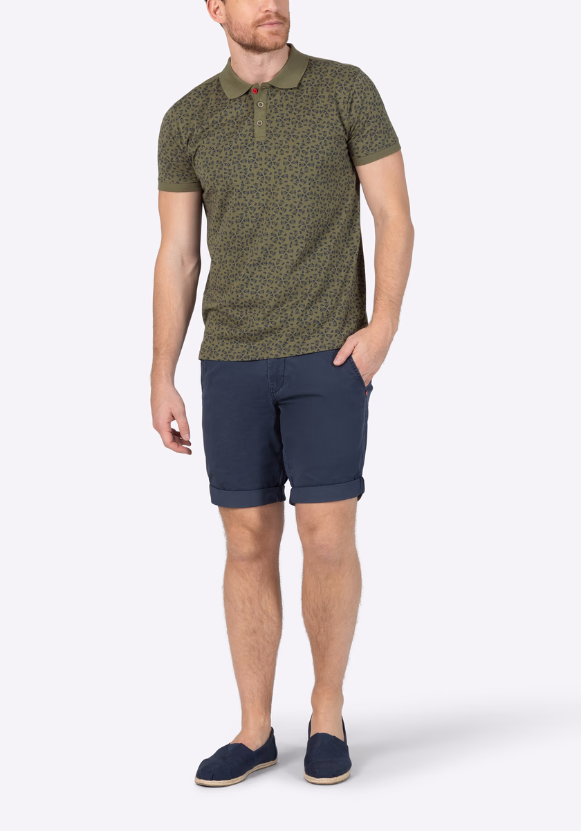 Poznámka redakce: Polokošile byste měli vždy nosit volně přes kalhoty. Nikdy do kalhot! To platí i pro moderní mini celoplošně potištěnou verzi. Volný pravidelný střih s plochým úpletovým límcem, krátkou légou na půl knoflíku, lemem rukávů s připojenými žebrovanými manžetami, úzkým ramenním sedlem a rozparkovanými bočními švy. Vyrobeno z vysoce kvalitního, lehkého bavlněného žerzeje s potiskem a jemnými barevnými kontrasty na límci a lemu.