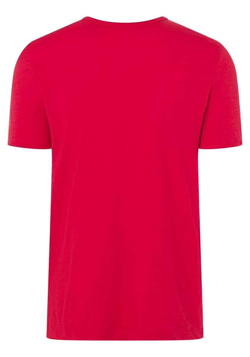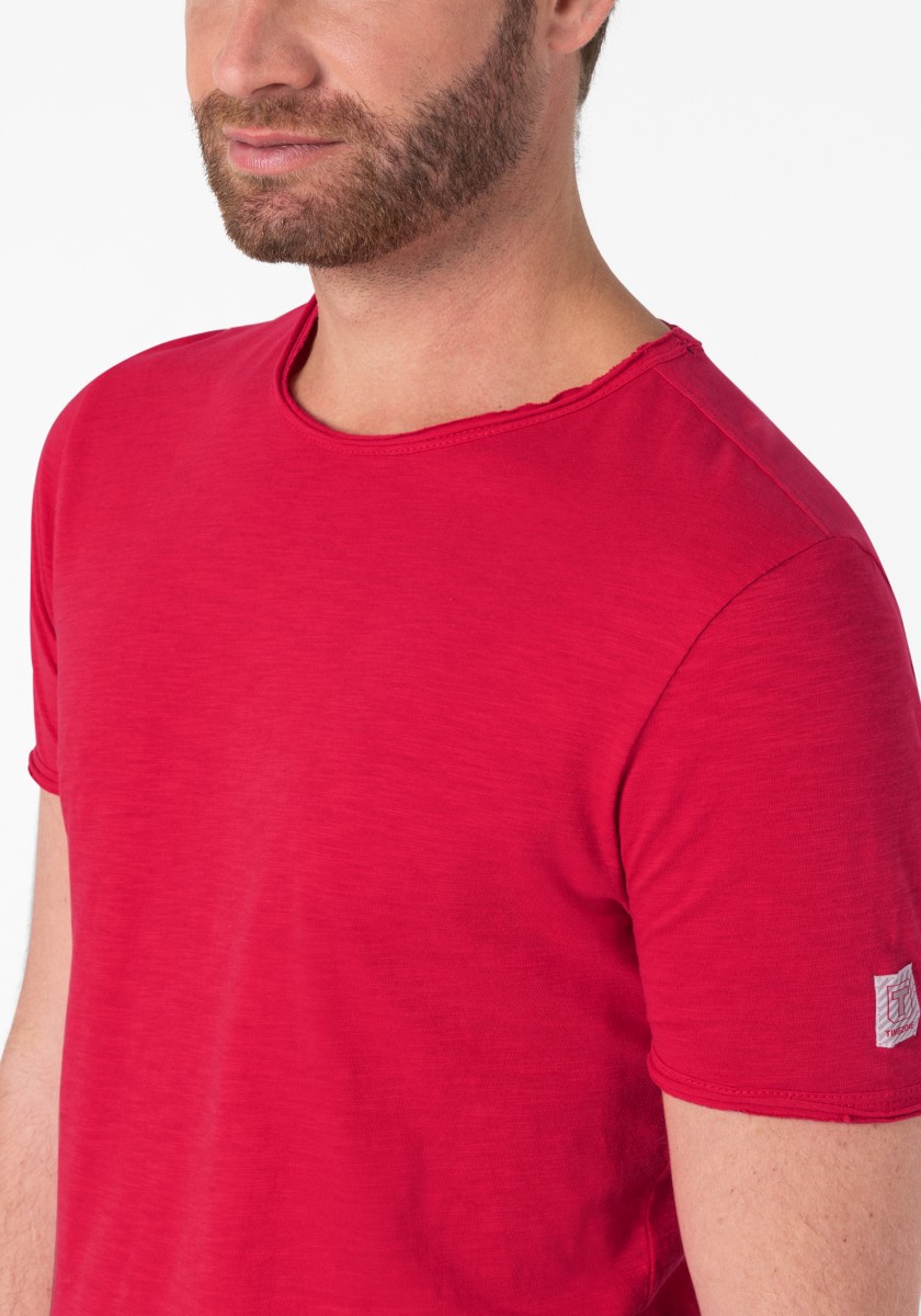 Clean T -shirt design with casual cut and rolled edges on the neck and cuffs. Quality: Soft jersey fabric made of high quality clean cotton. It is characterized by an irregular, living surface, which is the result of deliberate thickening of the yarn. Pleasant: Fine print on the neck is replaced by a annoying woven label. Available in a wide range of colors.