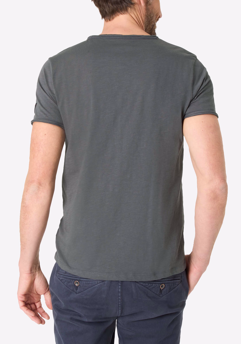 Clean T -shirt design with casual cut and rolled edges on the neck and cuffs. Quality: Soft jersey fabric made of high quality clean cotton. It is characterized by an irregular, living surface, which is the result of deliberate thickening of the yarn. Pleasant: Fine print on the neck is replaced by a annoying woven label. Available in a wide range of colors.