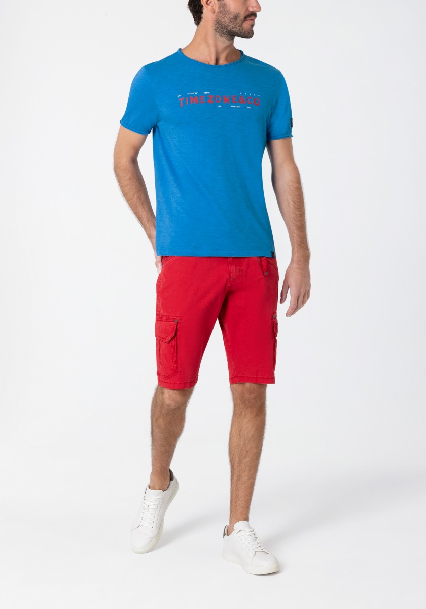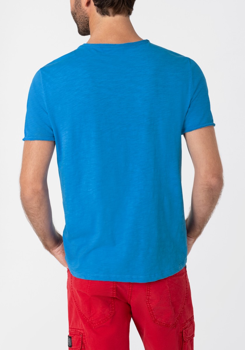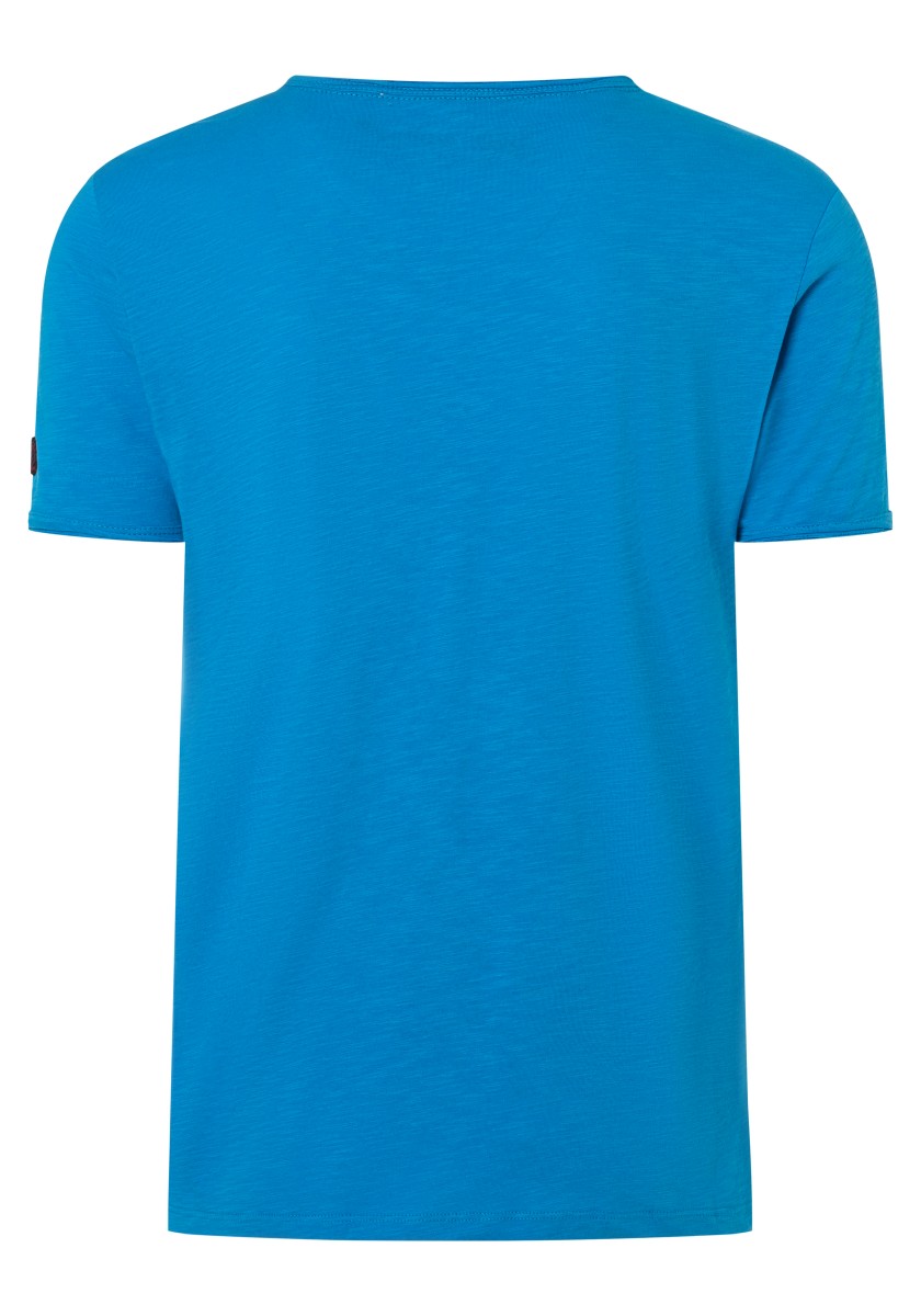 Střih: čistý, jednoduchý, známý, pravidelný s krátkým výstřihem do V a rolovaným okrajem. Celoplošný potisk: stručný, s efektem wow, mini žirafy a palmy. Manžety a lem rukávů s nadčasovým dvojitým prošíváním, lem: klasický rovný. Výrobek: měkký kluzký single jersey vyrobený z čisté, vysoce kvalitní bavlny. Stylingový tip: jako partnera k outfitu rozhodně použijte jednobarevné spodky. Tričko je dostatečně výrazné.