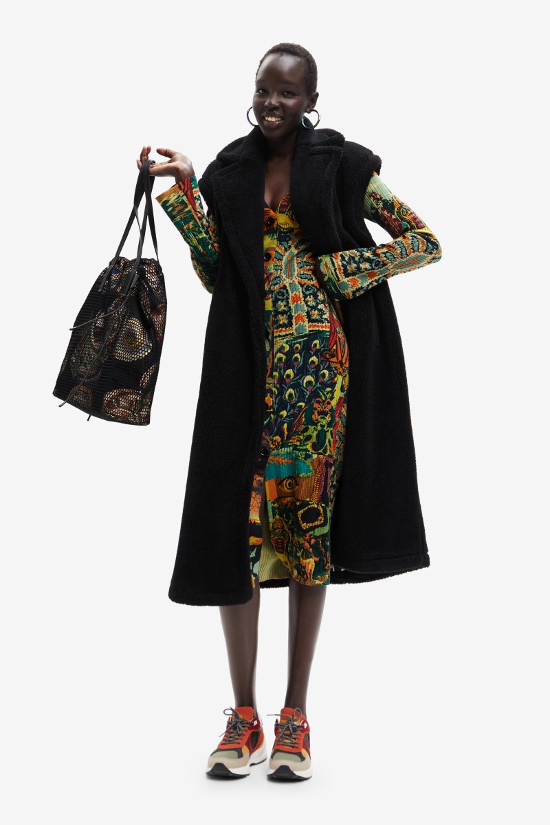 Tato vesta je vyrobena z hřejivé vlněné tkaniny příjemné na dotek, nezůstane bez povšimnutí a díky rovnému střihu, dlouhé délce a límci s klopami se velmi snadno kombinuje.