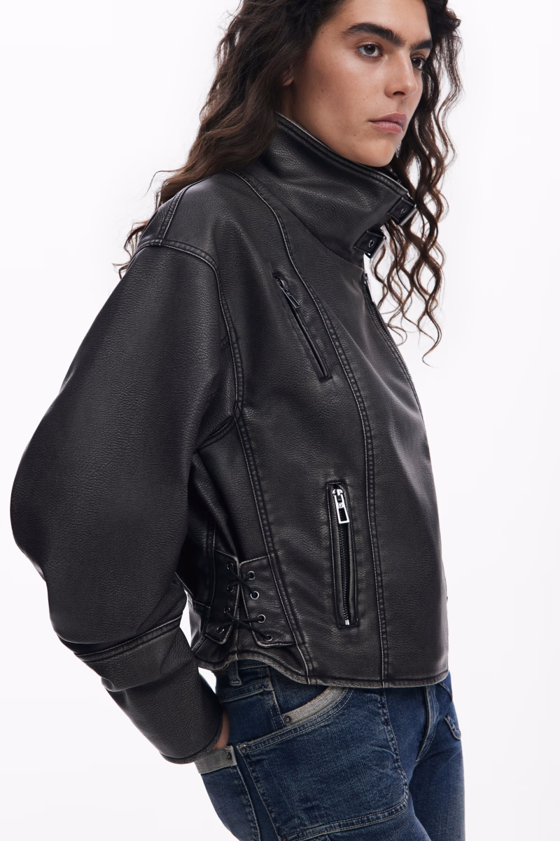 Nadměrná bunda ve stylu Biker se zapínáním na zip a mírně zvýšeným límcem.
