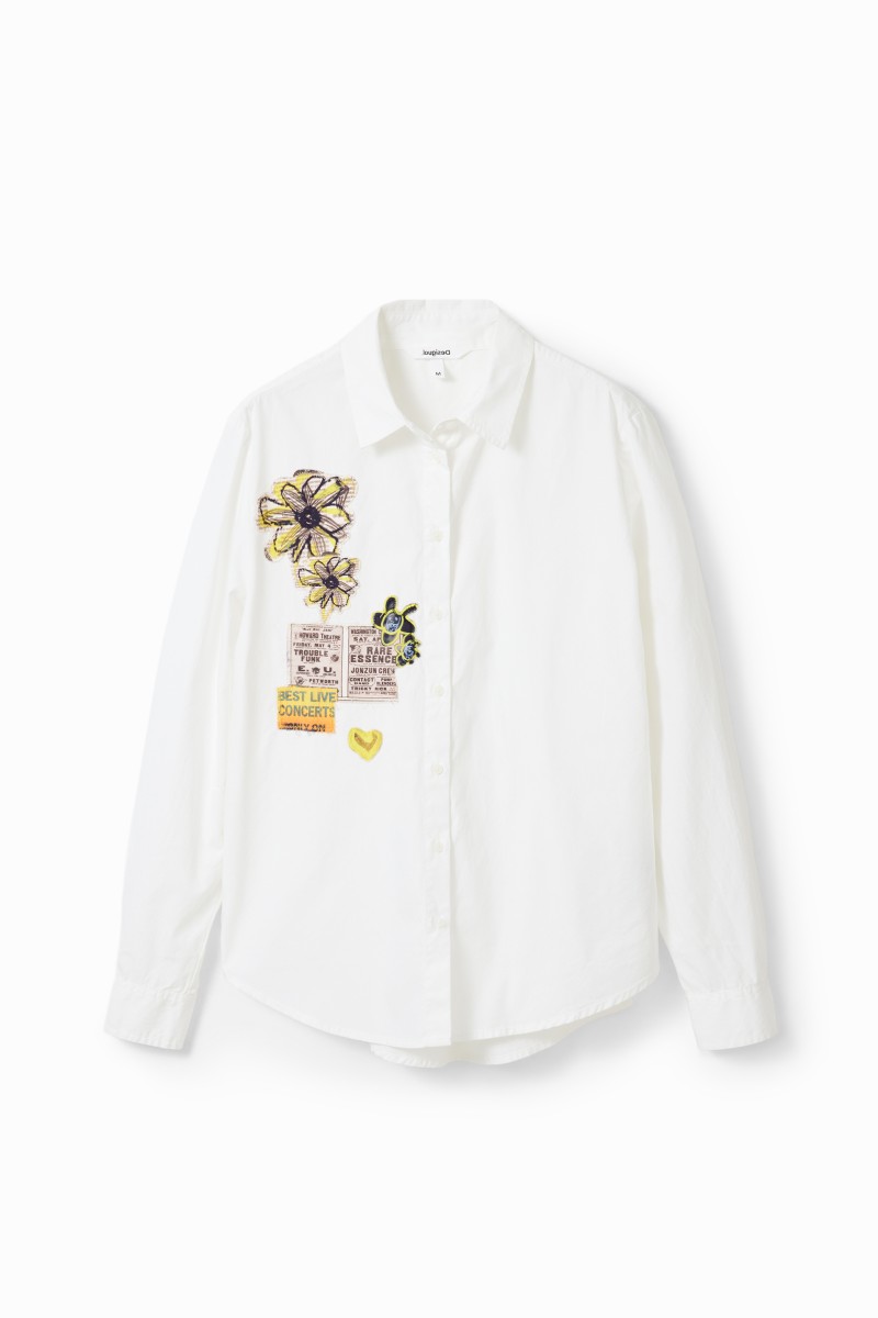 Košile s dlouhým rukávem z hladkého popelínu s nášivkami vpředu.