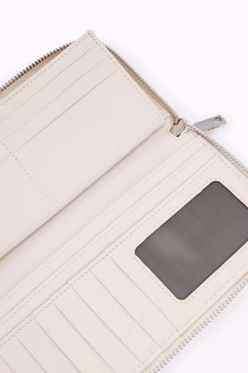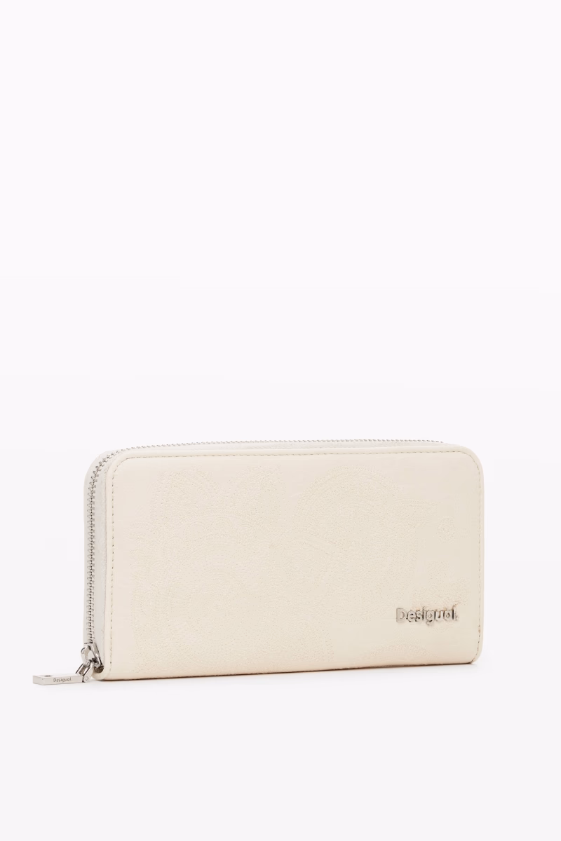 Wallet with leather effect with embroidered flowers and zip fastening