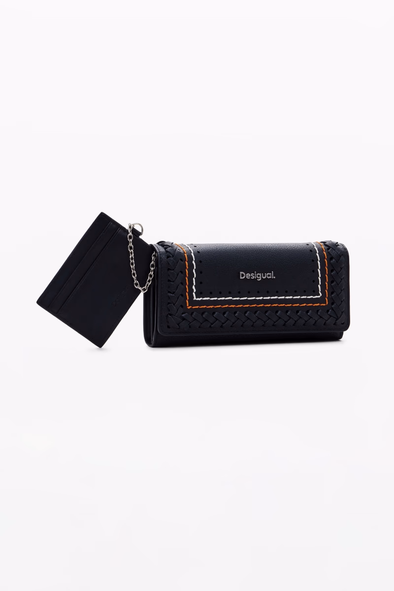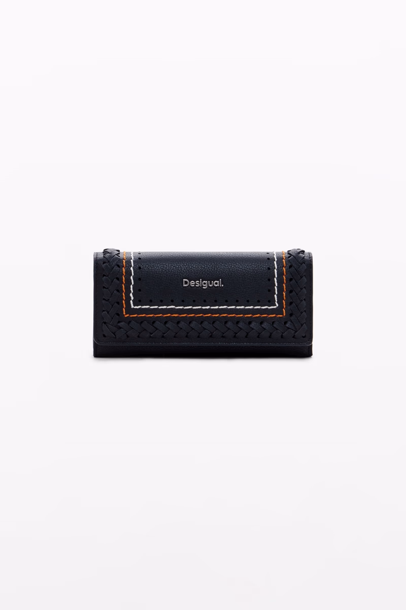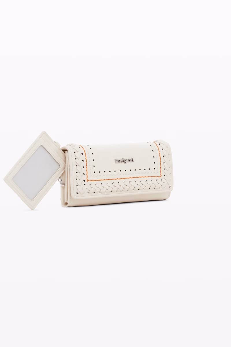 Peněženka z tkaniny s efektem pletené kůže se zipovým uzávěrem a prošíváním