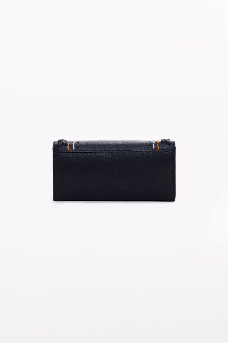 Fabric wallet with a knitted skin effect with a zipper closure and stitching
