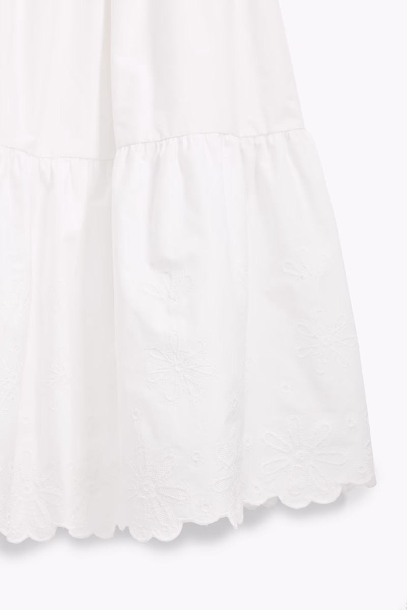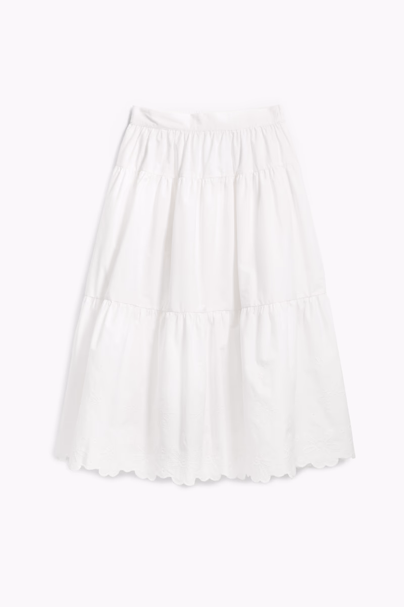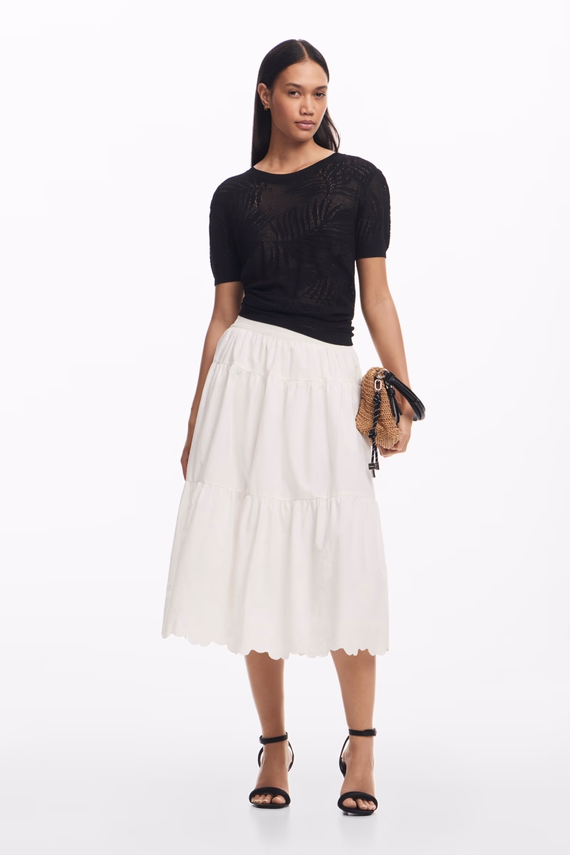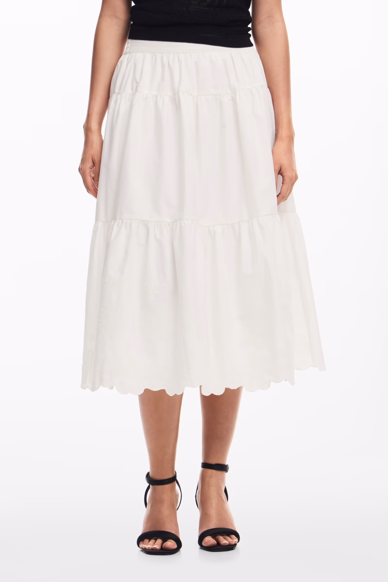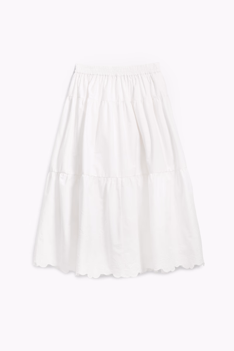Long panel skirt with embroidery at the bottom and rubber at the waist.