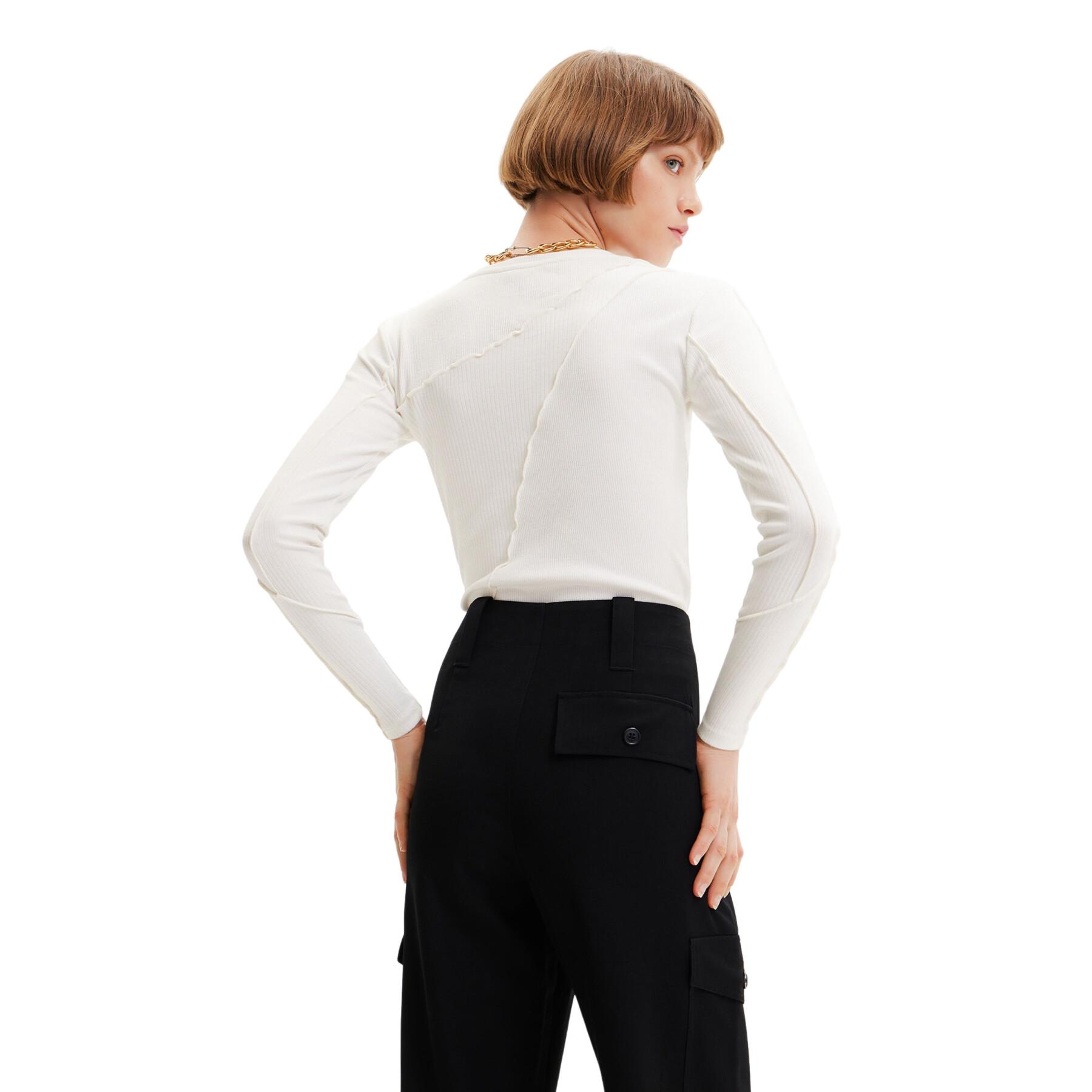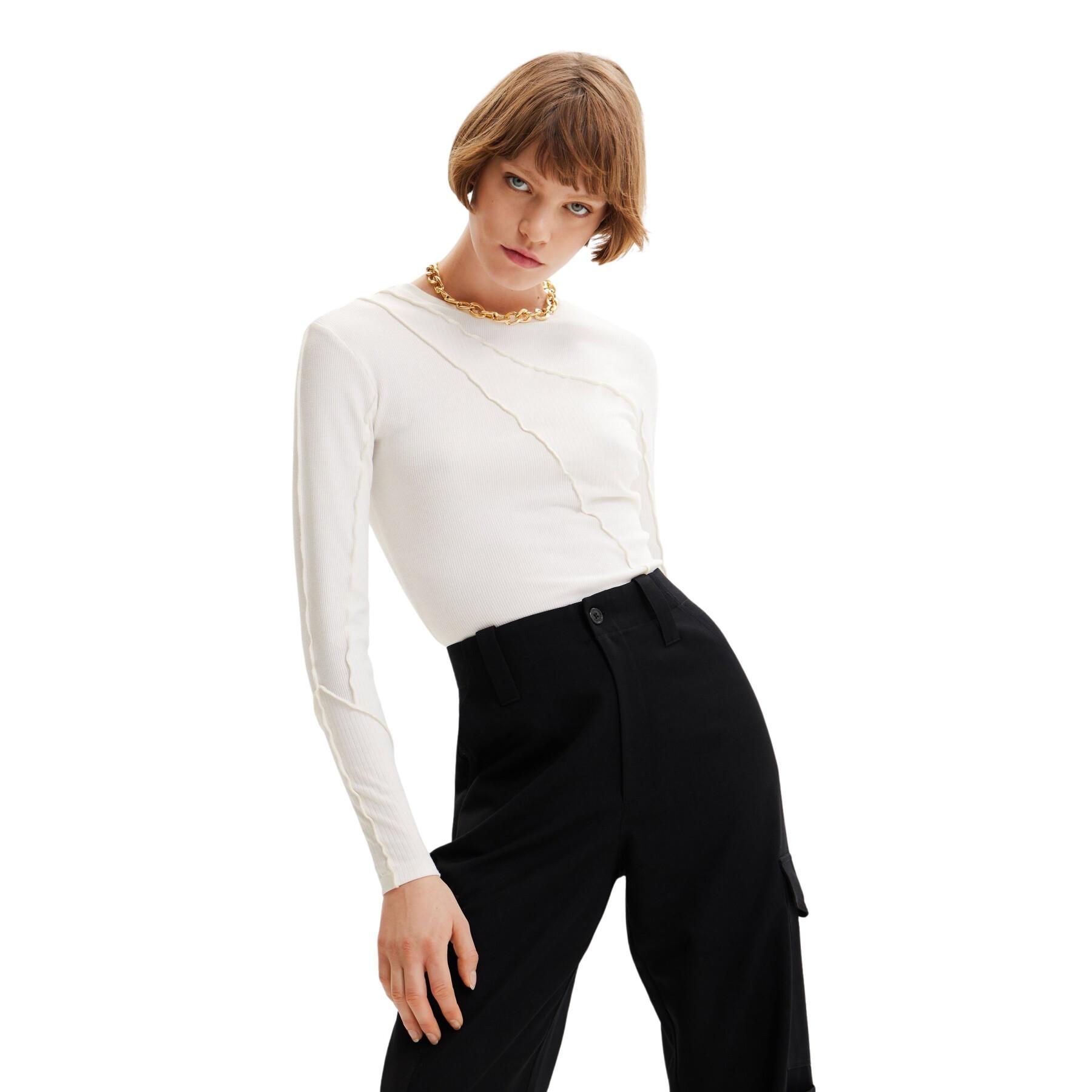Přiléhavé tričko s dlouhým rukávem ze směsi žebrovaných úpletů s detaily zvýšených švů.