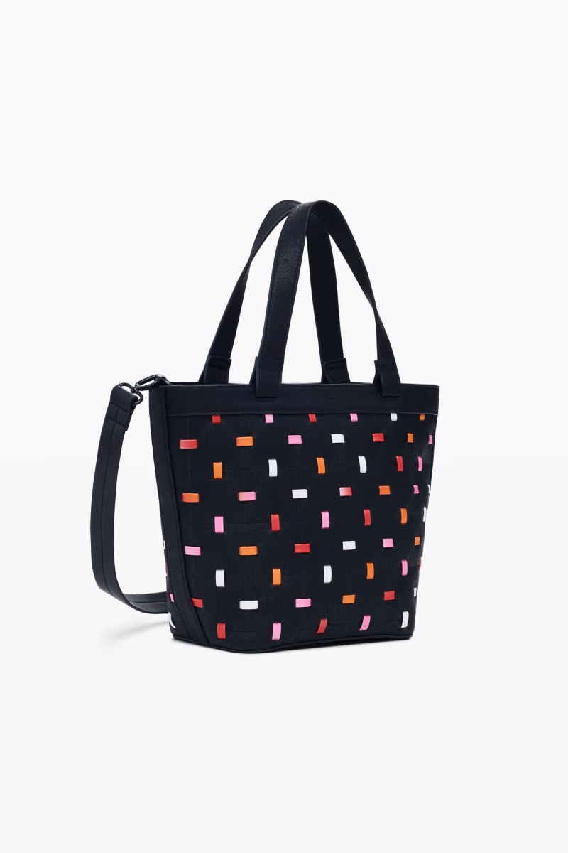 Large perforated shopper bag with contrasting color details and zip fastening.