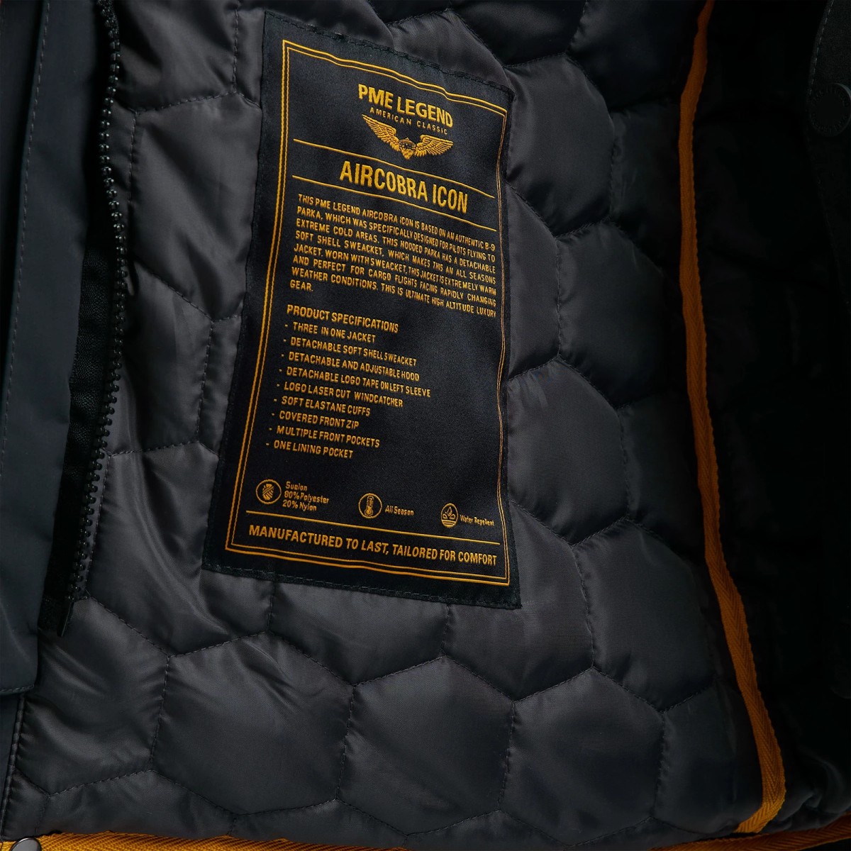 PME Legend Aircobra Icon vychází z autentické parky B-9, která byla speciálně navržena pro piloty létající do extrémně chladných oblastí. Tato parka s kapucí má odnímatelnou softshellovou mikinu, díky čemuž je stylová pro celou sezónu. Tato bunda, která se nosí s mikinou, je extrémně teplá a ideální do rychle se měnících povětrnostních podmínek. Špičkové luxusní vybavení do vysokých nadmořských výšek.