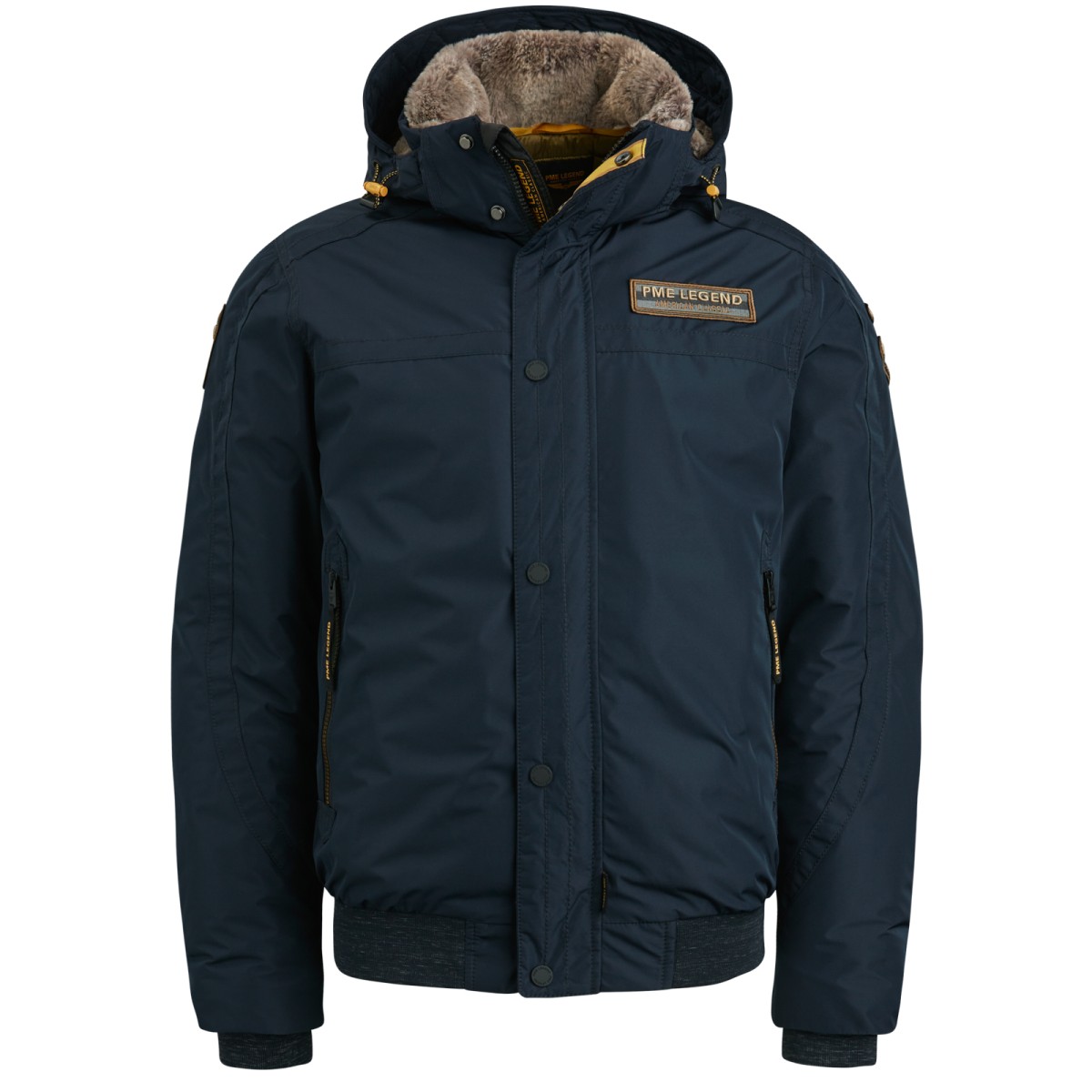 The PME Legend Ice Striper is made of recycled polyester. The detachable inner collar made of imitation fur and the soft, elasticated cuffs and waistband, together with the Tech Down filling, ensure warmth and comfort. The jacket has a windcatcher with chin protector and an adjustable hood. The badges on the chest and sleeve give this jacket the authentic PME Legend cargo look and feel. It has two side pockets with zipper and fleece lining, an inner pocket with zipper, and a mesh pocket with zipper in the lining for plenty of storage space.