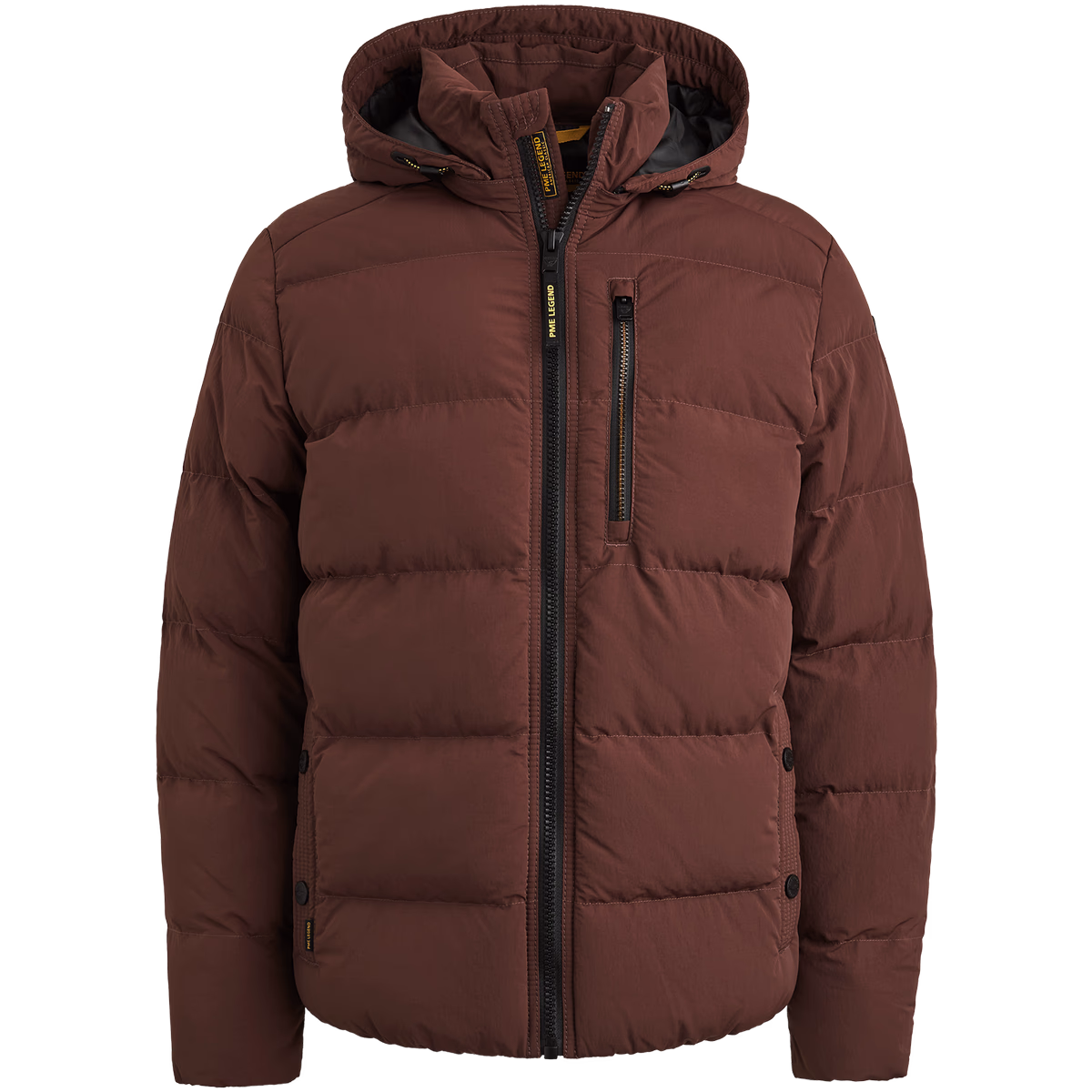 PME Legend Brewster is a durable quilted jacket made of water -repellent nylon. The Tech Down filling fills with heat and comfort. The removable, adjustable hood offers flexibility and protection in any weather, while the elastic waist protects from the cold. The jacket has a zipper pocket and a detachable keychain, two side pockets with a fleece lining and an inner zippered pocket. The characteristic details of PME legends complete the appearance of the jacket.