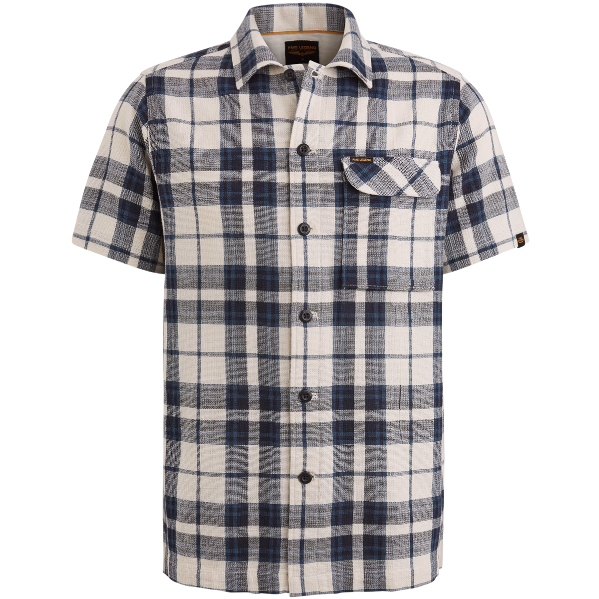 This T -shirt PME legend with short sleeves is made of cotton and can be worn as a layered piece over a shirt. A large checkered pattern gives this piece a rough look. The characteristic details of PME legends complete the overall impression.