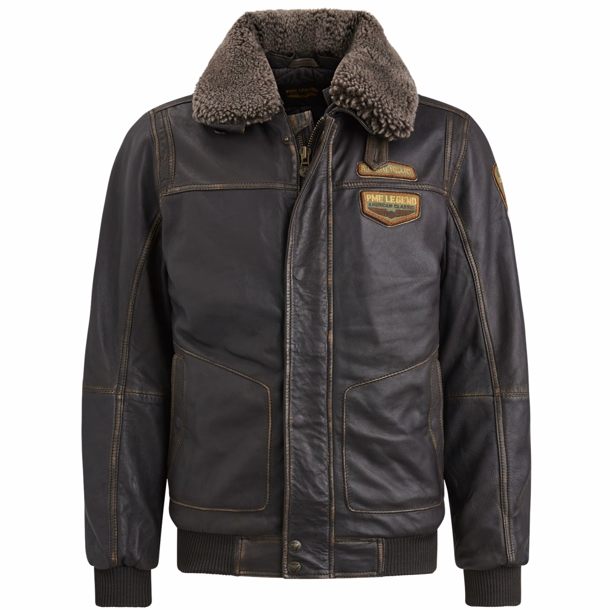 Introducing the irresistible men's jacket PME legend. It is made of cropped, semianilin colored sheepskin. The patches give the jacket a modern look that attracts attention. With the fitting cut and length to the waist, this jacket perfectly underlines your character.