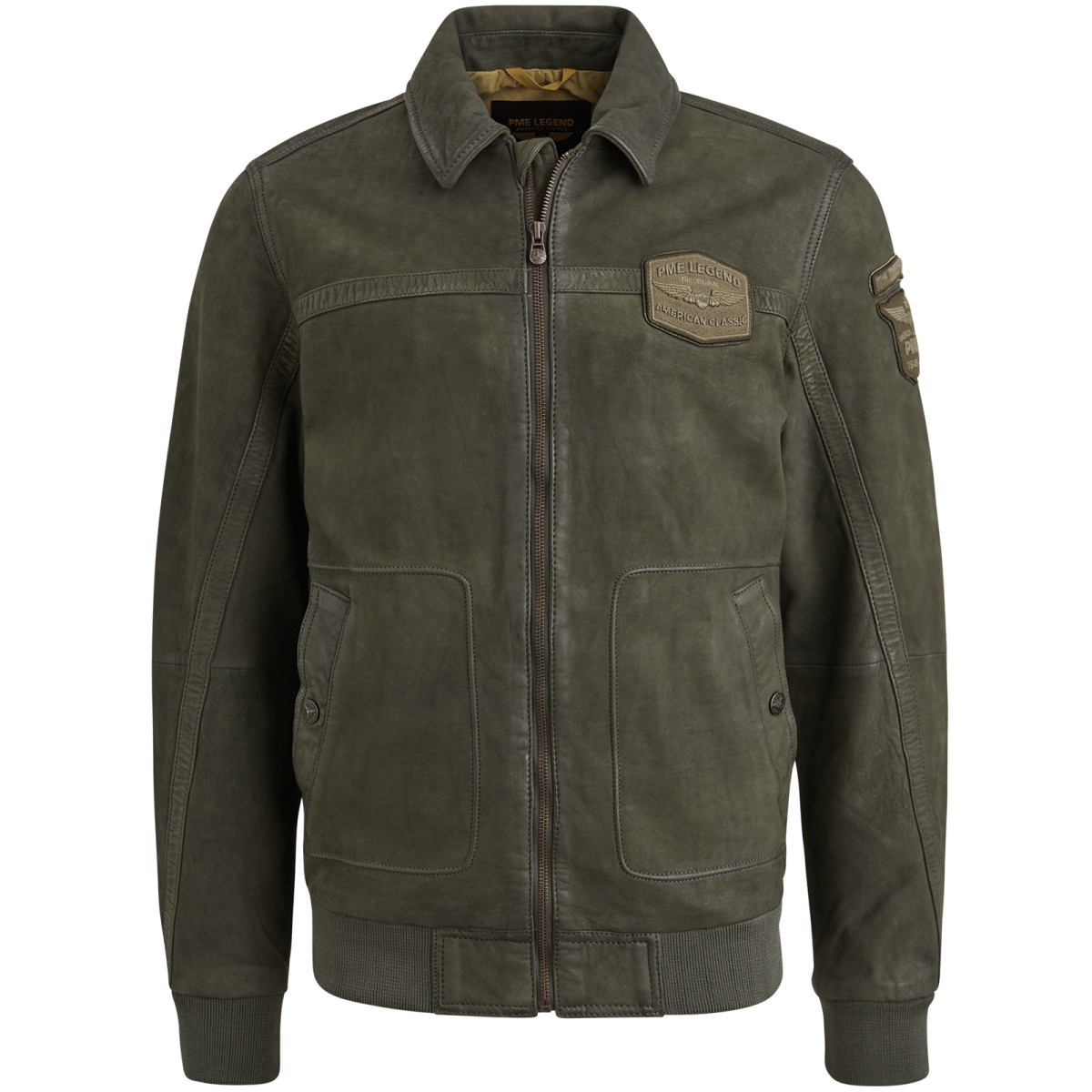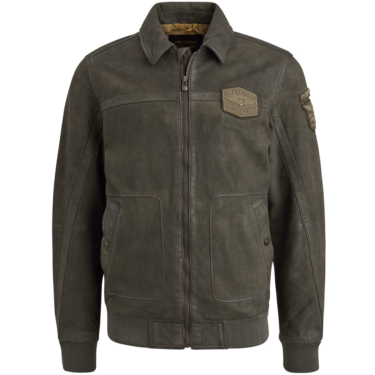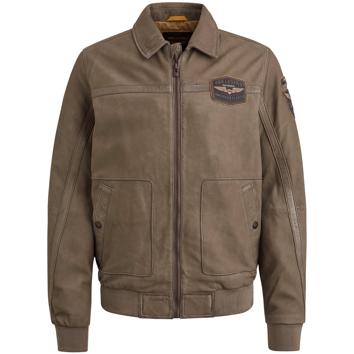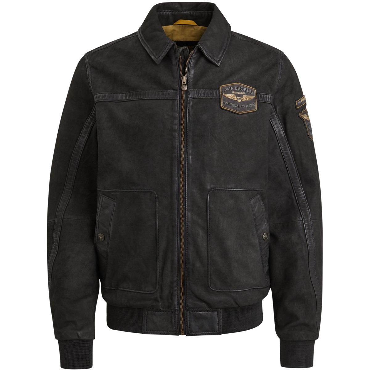 The Hudson leather jacket is inspired by a real American classic: the original MA-1 air jacket. It is made of 100% sheepskin, so it is durable and comfortable, and has a cotton lining with a large authentic label. The jacket has side pockets for press studs and inner zip pockets. Soft ribbed cuffs and wind trap provide extra comfort. Reinforcement strips on seams, metal zipper and badges give this robust appearance PME legends.