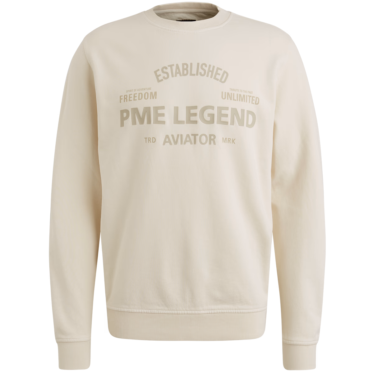 This sweatshirt PME legends with round neckline is made of comfortable terry fabric of 100% cotton. The combination of waffle texture, coloring for clothing and large graphics on the chest makes this robust piece a unique piece. Authentic details such as a ribbed collar and cuffs complete the overall impression.