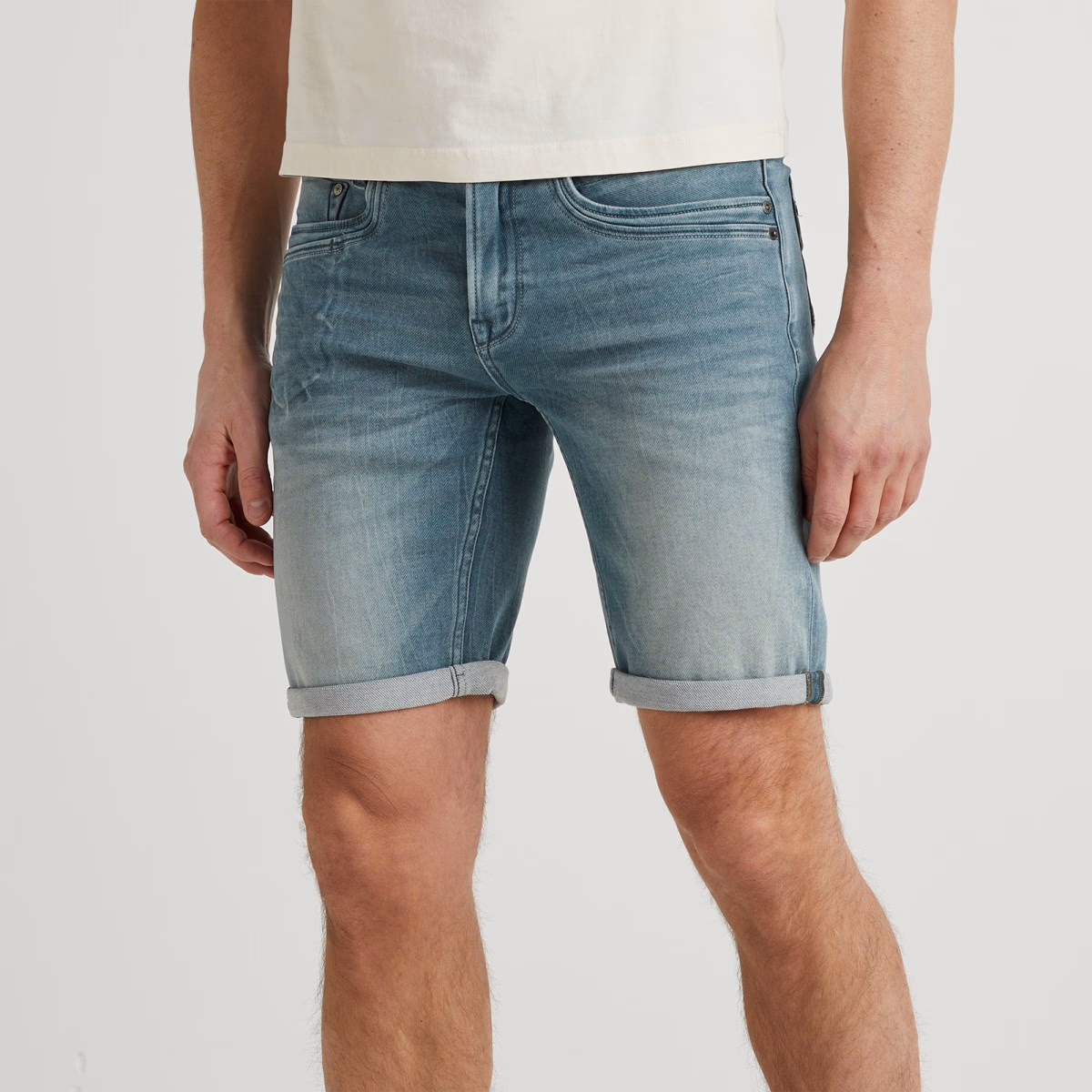 5-pocket denim shorts from PME Legend with a button and zip closure and a turn-up in the legs.