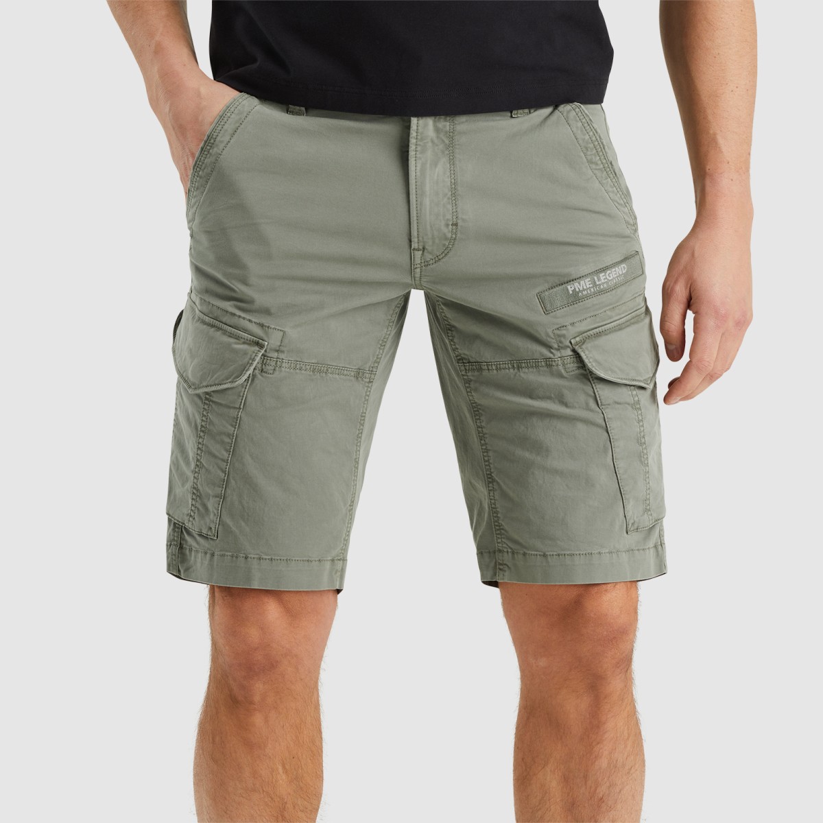The PME Legend Nordrop Cargo shorts are made of a fine, garment-dyed twill with comfort stretch and a soft finish. The oversized, slanted pockets provide the true cargo look. The special gadget pocket with a hidden press button makes these PME Legend cargo shorts stand out. The signature PME Legend details add the finishing touches.