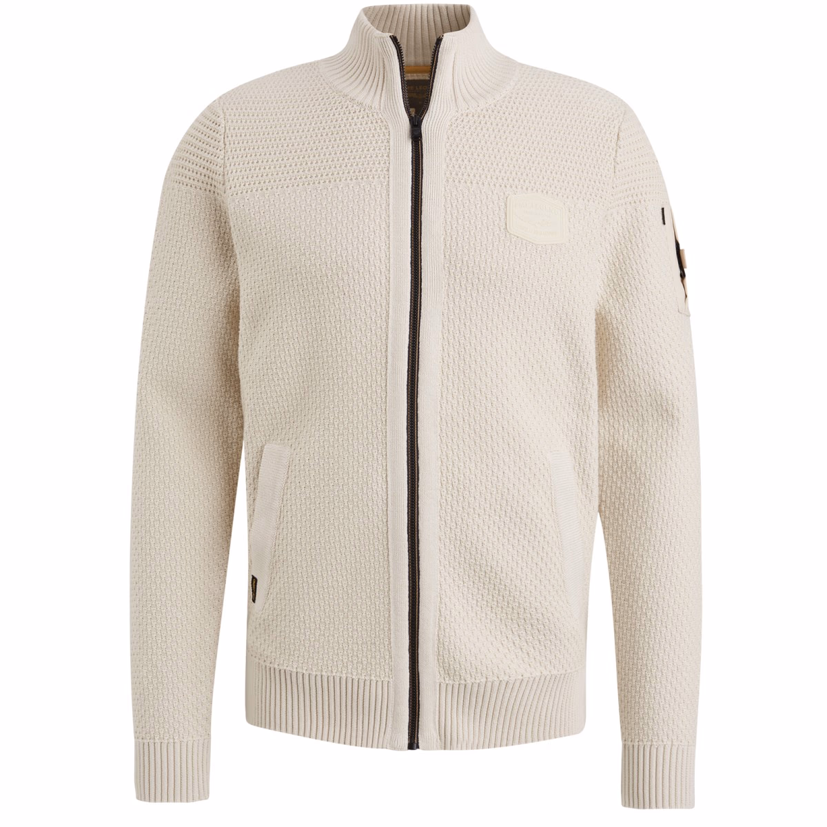 Tento cardigan PME Legend je vyroben ze 100% bavlny. Má stojáček, zapínání na zip a dvě boční kapsy se skrytými druky. Texturovaný detail na ramenou dodává cardiganu cool vzhled. Charakteristické detaily PME Legend, jako je odznak na hrudi a letová kapsa na rukávu, dodávají konečnou úpravu.