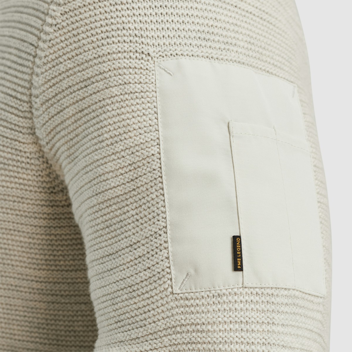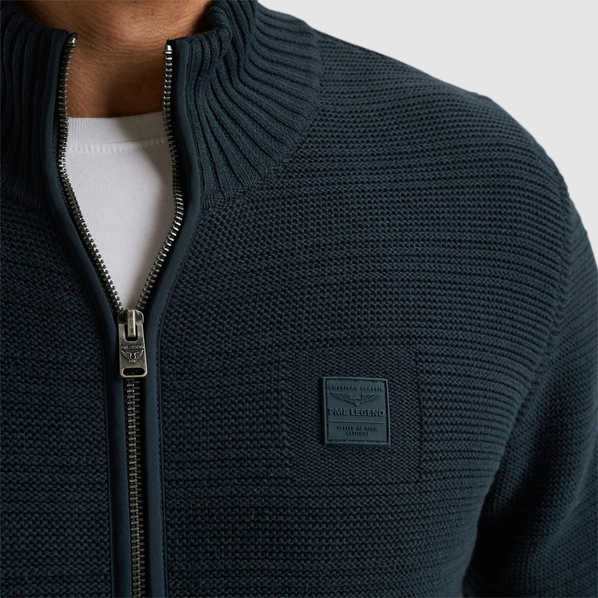 Tento cardigan PME Legend je vyroben ze 100% bavlny a má pletenou texturu. Má stojáček, zapínání na zip a dvě boční kapsy. Charakteristické detaily PME Legend, jako je letová kapsa na rukávu a gumový odznak na hrudi, dodávají konečnou podobu.