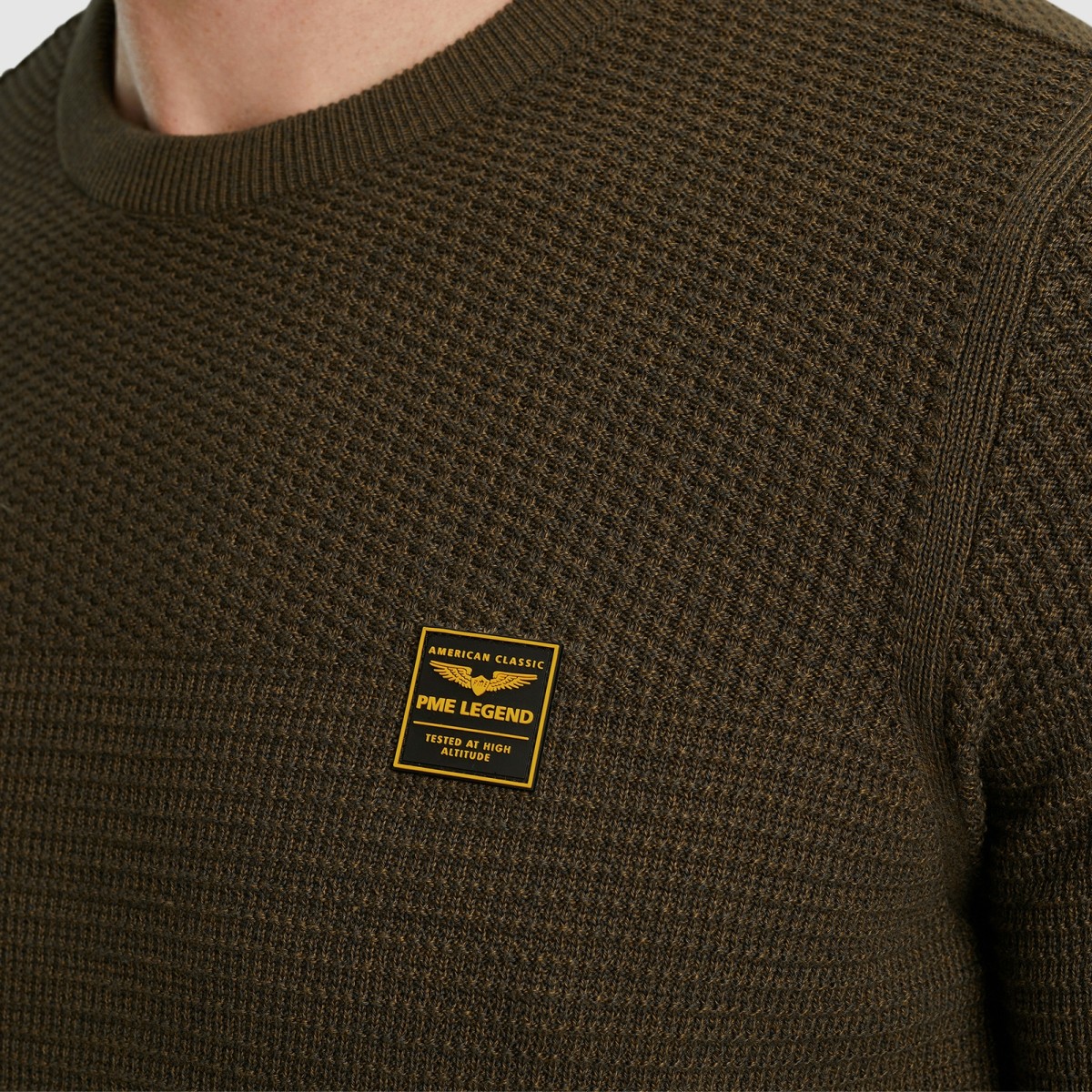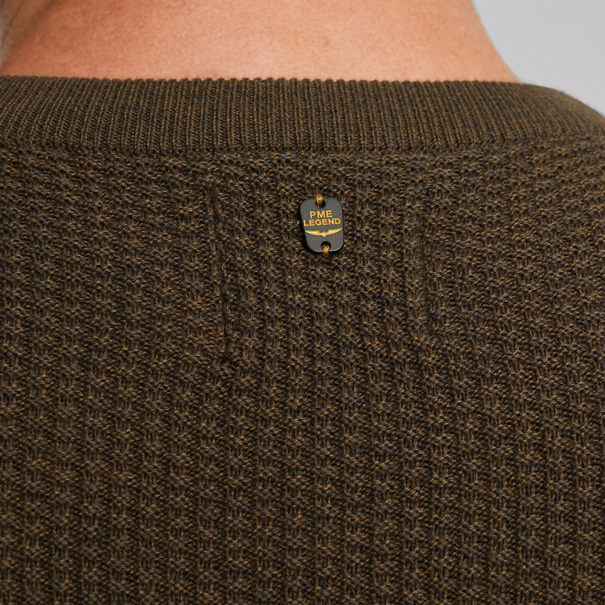 Pánský pletený svetr PME Legend PKW2411300 8035 z "buku" je všestranný a pohodlný oděv, který dodá vašemu šatníku stylové akcenty. Svetr regular fit nabízí rovný, pohodlný střih, který je ideální pro každodenní nošení a přitom stále zdůrazňuje mužskou siluetu. Speciální struktura měkké bavlněné mouliné zajišťuje příjemný pocit a dodává svetru jedinečný vzhled. Žebrování na límci, manžetách a lemu dodává modelu tvarovou stabilitu a moderní sportovní nádech.